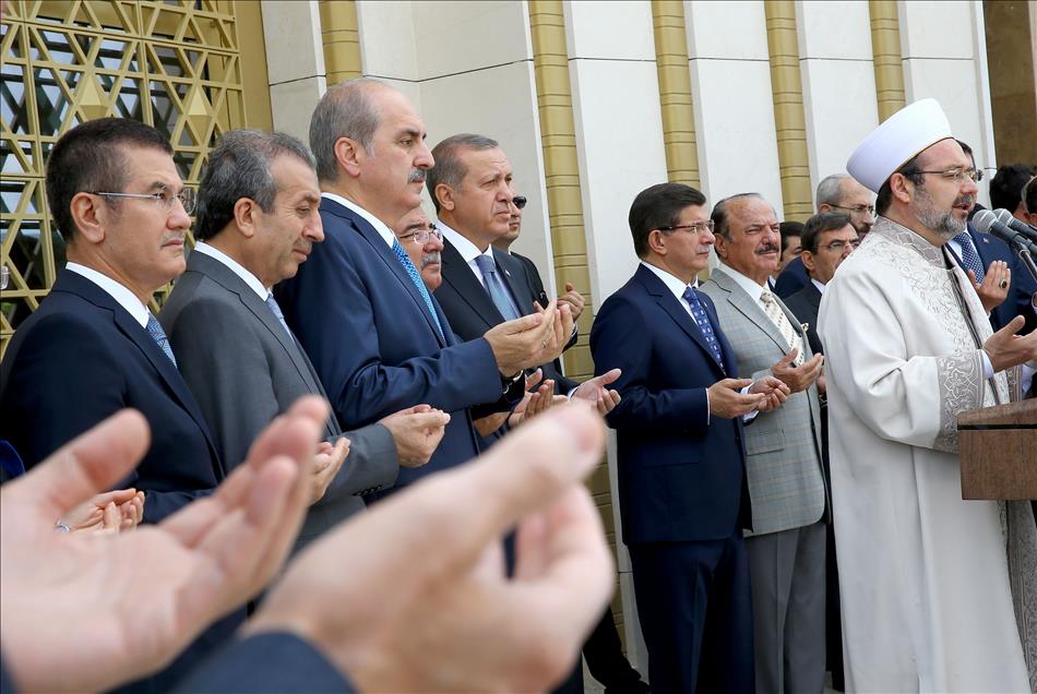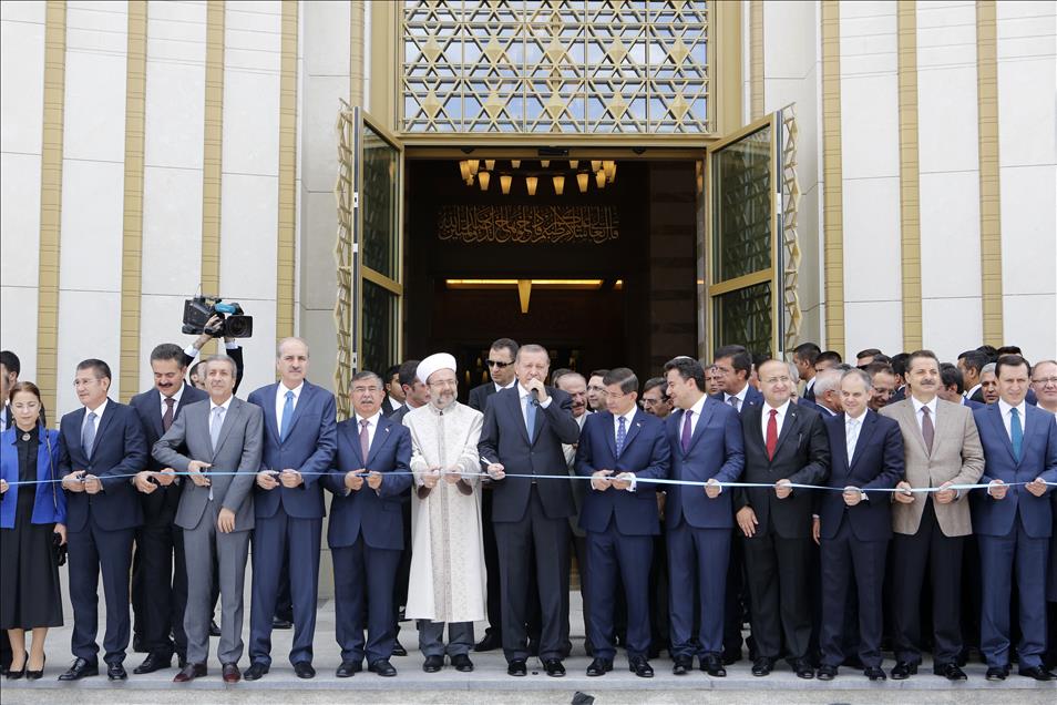 Cumhurbaşkanı Recep Tayyip Erdoğan ve Başbakan Ahmet Davutoğlu, Cumhurbaşkanlığı Külliyesi içinde yer alan Beştepe Millet Camisi'nin açılışına katıldı. Açılışta, Diyanet İşleri Başkanı Prof. Mehmet Görmez tarafından dua okundu. Açılışta, TBMM Başkanı İsmet Yılmaz, Başbakan Yardımcılsı Numan Kurtulmuş, Çevre ve Şehircilik Bakanı İdris Güllüce, Gıda, Tarım ve Hayvancılık Bakanı Mehdi Eker, Gümrük ve Ticaret Bakanı Nurettin Canikli ve Ekonomi Bakanı Nihat Zeybekci de yer aldı. (Kayhan Özer - Anadolu Ajansı)Kayhan Özer