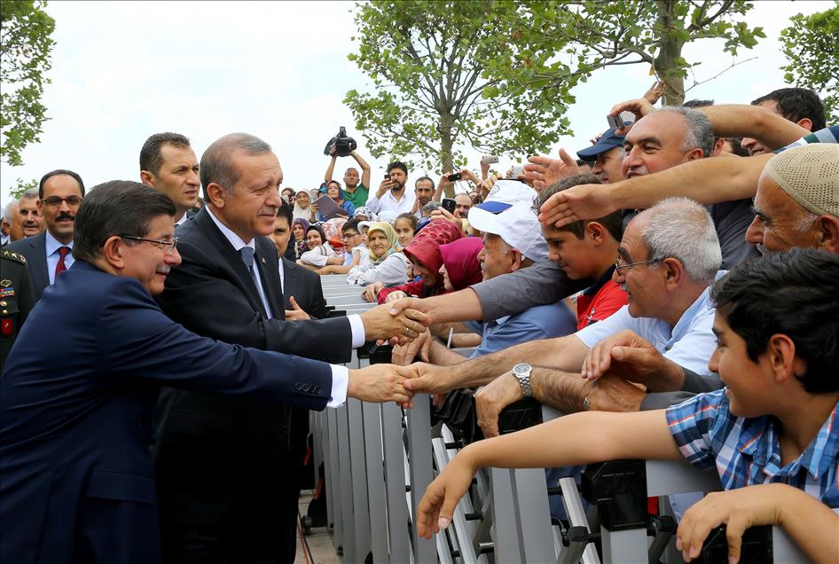 Cumhurbaşkanı Recep Tayyip Erdoğan ve Başbakan Ahmet Davutoğlu, Cumhurbaşkanlığı Külliyesi içinde yer alan Beştepe Millet Camisi'nin açılışına katıldı. Cumhurbaşkanı Erdoğan ve Başbakan Davutoğlu, açılışa katılan vatandaşları selamladı. (Kayhan Özer - Anadolu Ajansı)Kayhan Özer