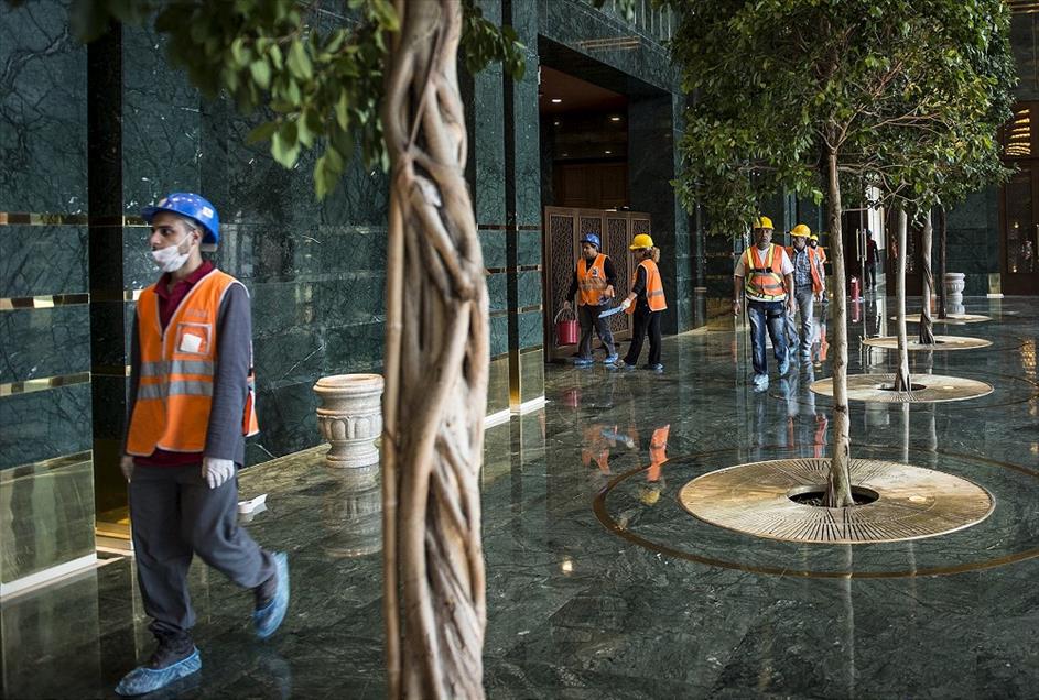 Beştepe'deki yeni Cumhurbaşkanlığı yerleşkesi, ilk kez 29 Ekim kutlamaları için kullanılacak. Tebrikleri Beştepe'de kabul edecek Cumhurbaşkanı recep Tayyip Erdoğan, akşam da eşi Emine Erdoğan ile Cumhuriyet Bayramı resepsiyonuna ev sahipliği yapacak. Resepsiyonun yapılacağı fuaye alanı ilk kez AA tarafından görüntülendi. (Özge Elif Kızıl - Anadolu Ajansı)Özge Elif Kızıl