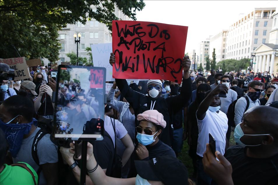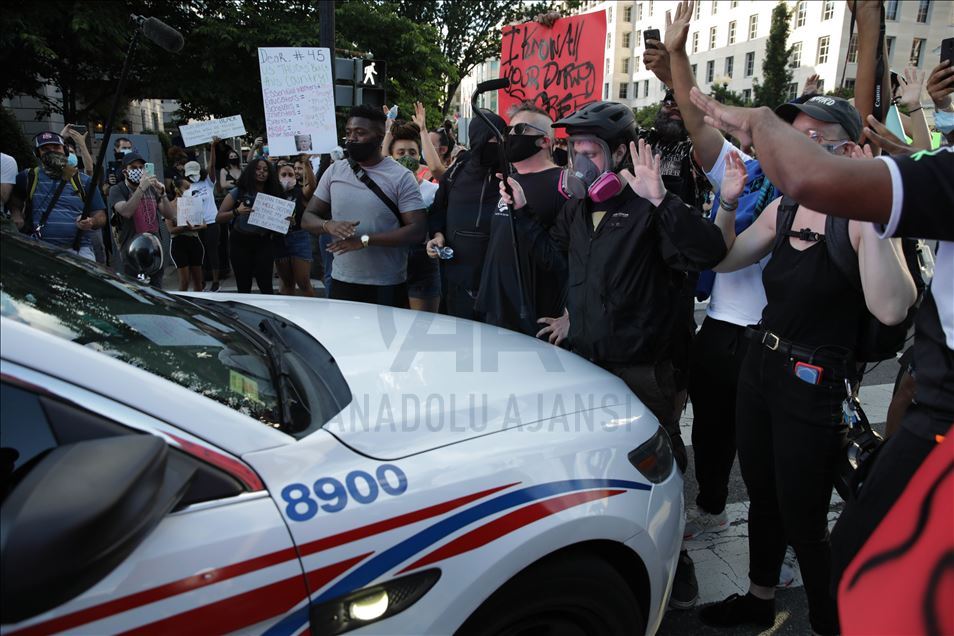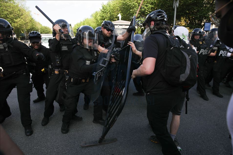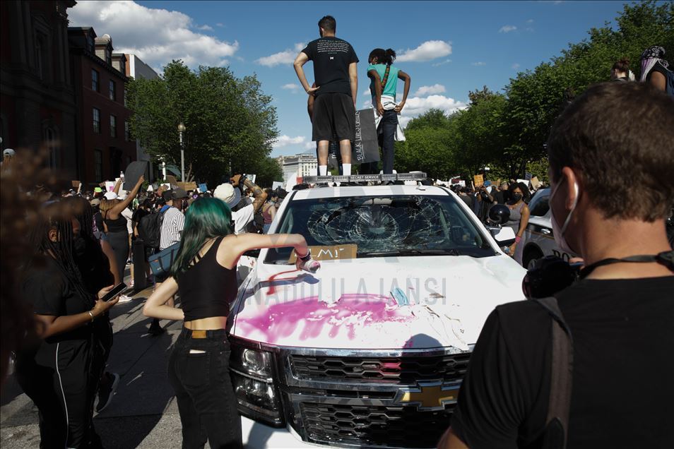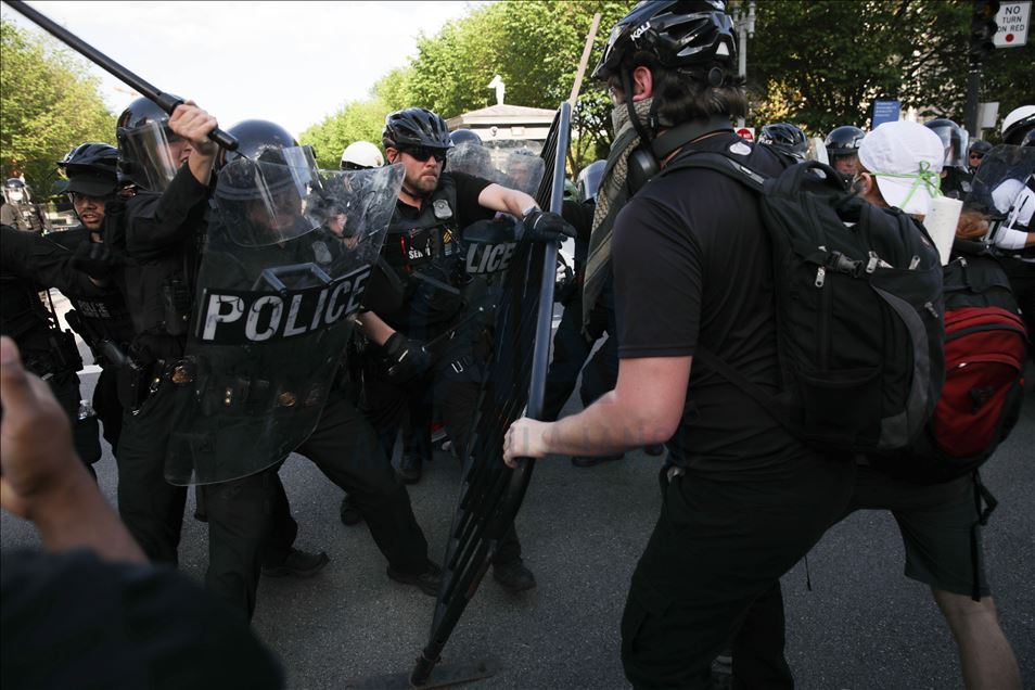 ABD'nin Minneapolis kentinde polis şiddeti sonucu siyahi George Floyd'un hayatını kaybetmesini protesto eden göstericiler Beyaz Saray önünde polisle karşı karşıya geldi. Lafayatte Park'ın polis tarafından kapatılmasının ardından Beyaz Saray'ın sol tarafındaki bölgede toplanan yüzlerce gösterici, dünkü protestolarına devam etti. Göstericilerden bazılarının polise ait 3 aracın üstüne çıktı, araçların camlarını kırdı ve araçlara ciddi hasar verdi. ( Yasin Öztürk - Anadolu Ajansı )Yasin Öztürk
