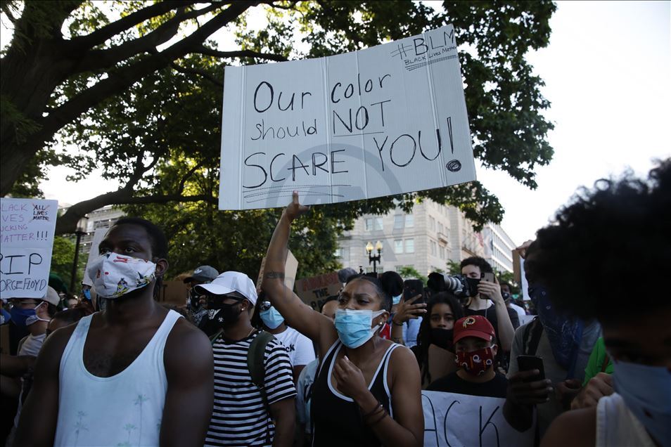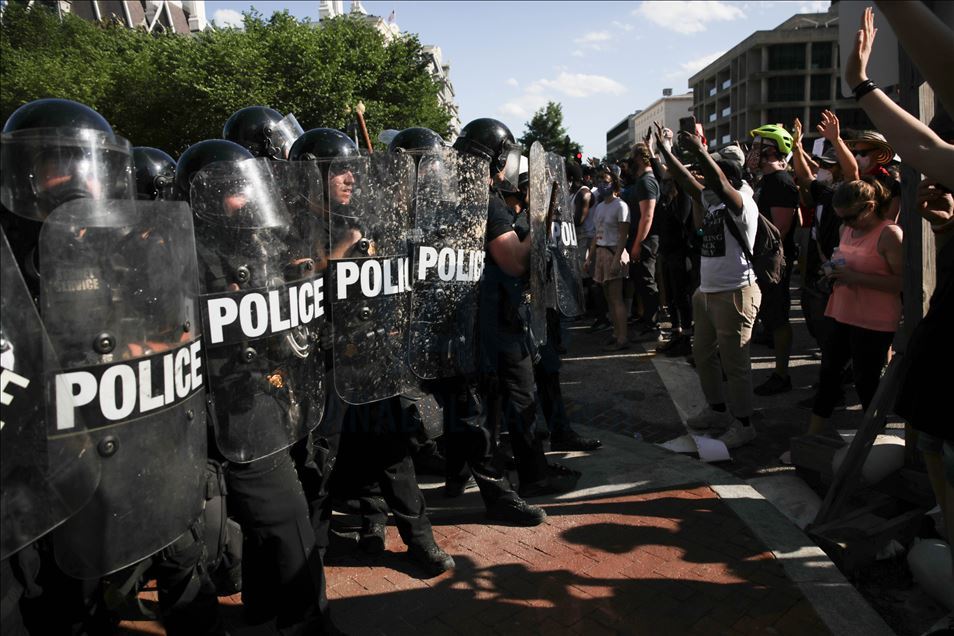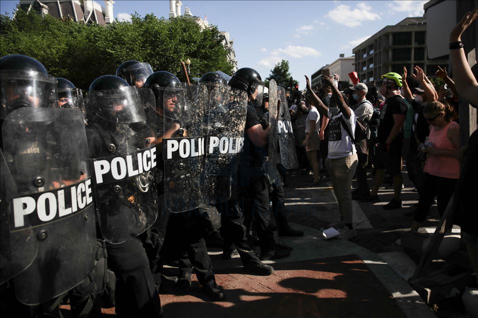 ABD'nin Minneapolis kentinde polis şiddeti sonucu siyahi George Floyd'un hayatını kaybetmesini protesto eden göstericiler Beyaz Saray önünde polisle karşı karşıya geldi. Lafayatte Park'ın polis tarafından kapatılmasının ardından Beyaz Saray'ın sol tarafındaki bölgede toplanan yüzlerce gösterici, dünkü protestolarına devam etti. ( Yasin Öztürk - Anadolu Ajansı )Yasin Öztürk
