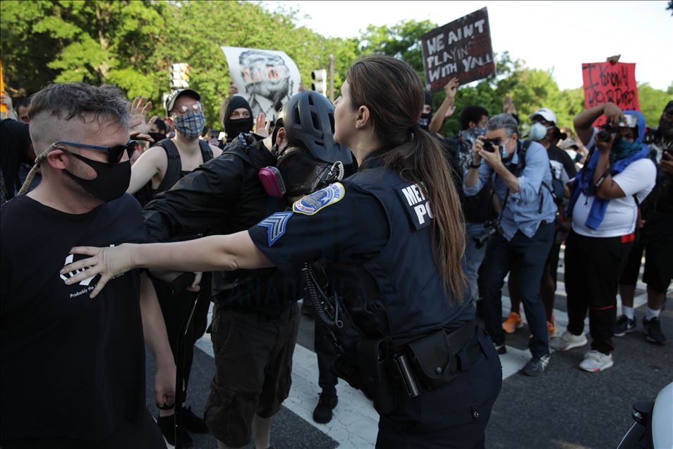 ABD'nin Minneapolis kentinde polis şiddeti sonucu siyahi George Floyd'un hayatını kaybetmesini protesto eden göstericiler Beyaz Saray önünde polisle karşı karşıya geldi. Lafayatte Park'ın polis tarafından kapatılmasının ardından Beyaz Saray'ın sol tarafındaki bölgede toplanan yüzlerce gösterici, dünkü protestolarına devam etti.