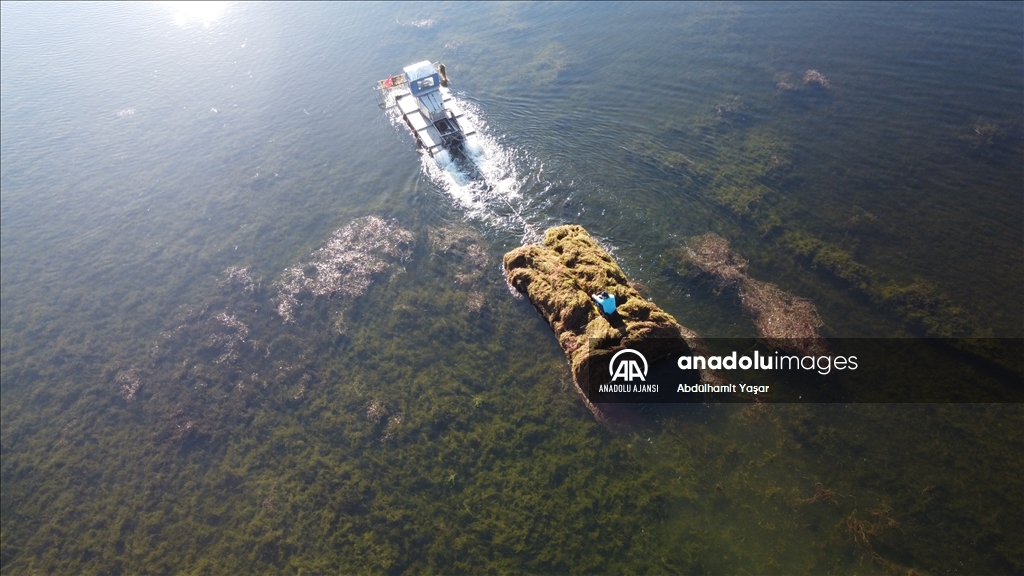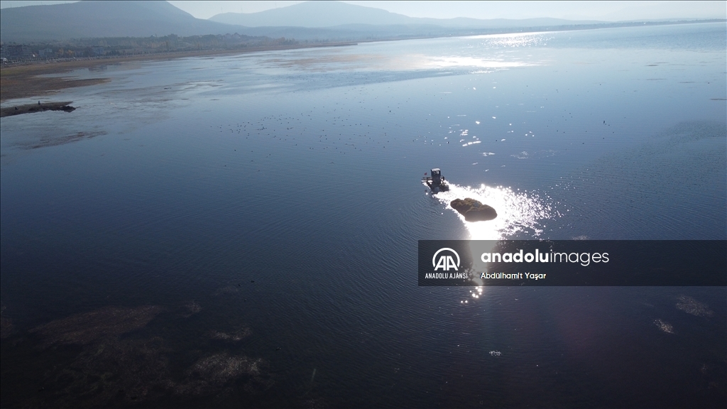 Bu yıl yaşanan aşırı kuraklık ve artan tarımsal sulama Türkiye'nin en büyük tatlı su gölü Beyşehir Gölü'nün metrelerce çekilmesine yol açtı. ( Abdülhamit Yaşar - Anadolu Ajansı )Abdülhamit Yaşar