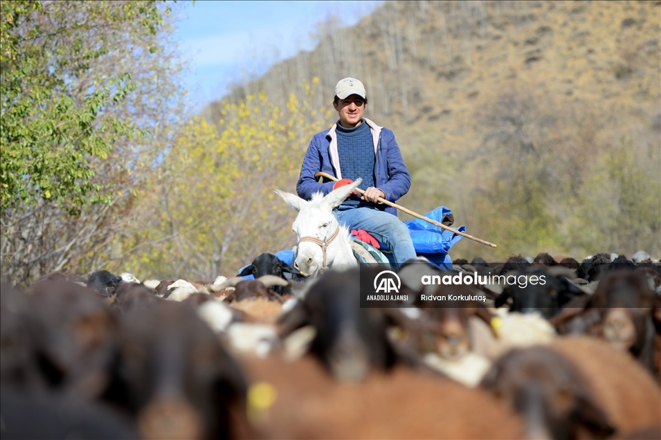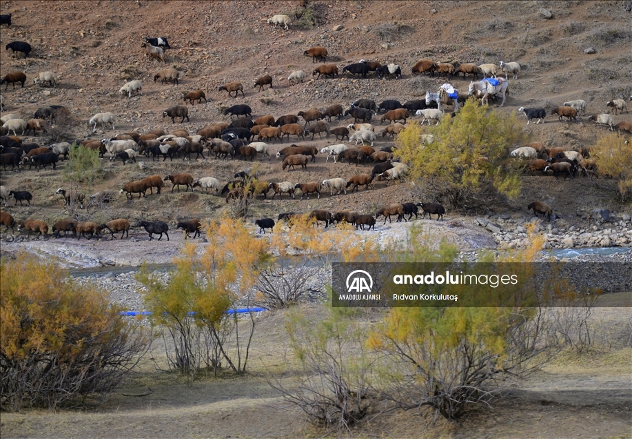 Bingöl'ün Yedisu ilçesinde, yeşil ve kızıl tonları ile sonbahar renkleri yaşanıyor. Besicilerin sonbahar renkleri arasında koyunlarıyla yaptığı yolculuk güzel görüntü oluşturdu.