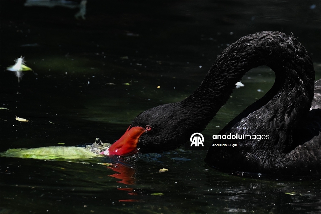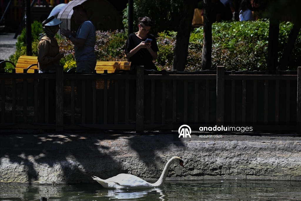 Kuğulu Park'taki kuğular, parkın havuzunda serinlemeye çalıştı. (Abdullah Güçlü - Anadolu Ajansı)Abdullah Güçlü