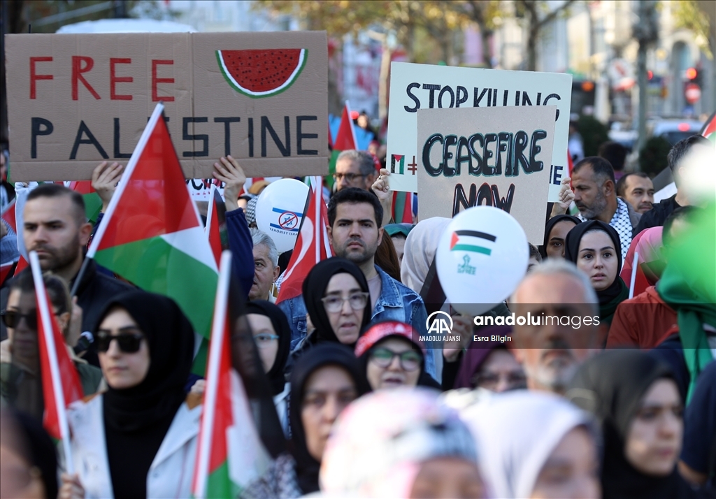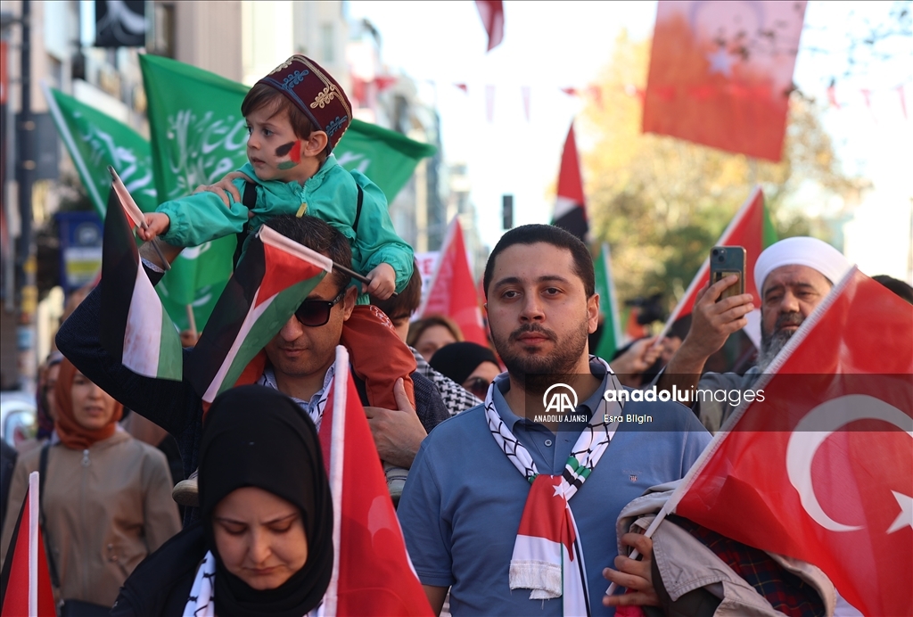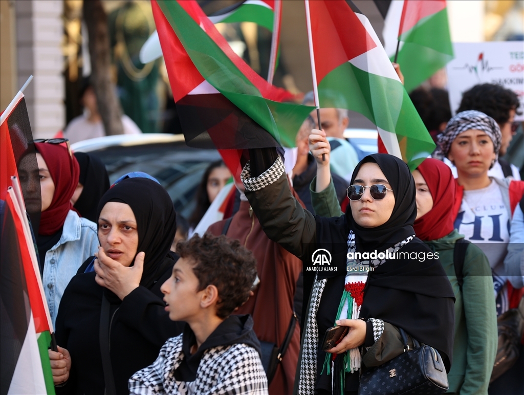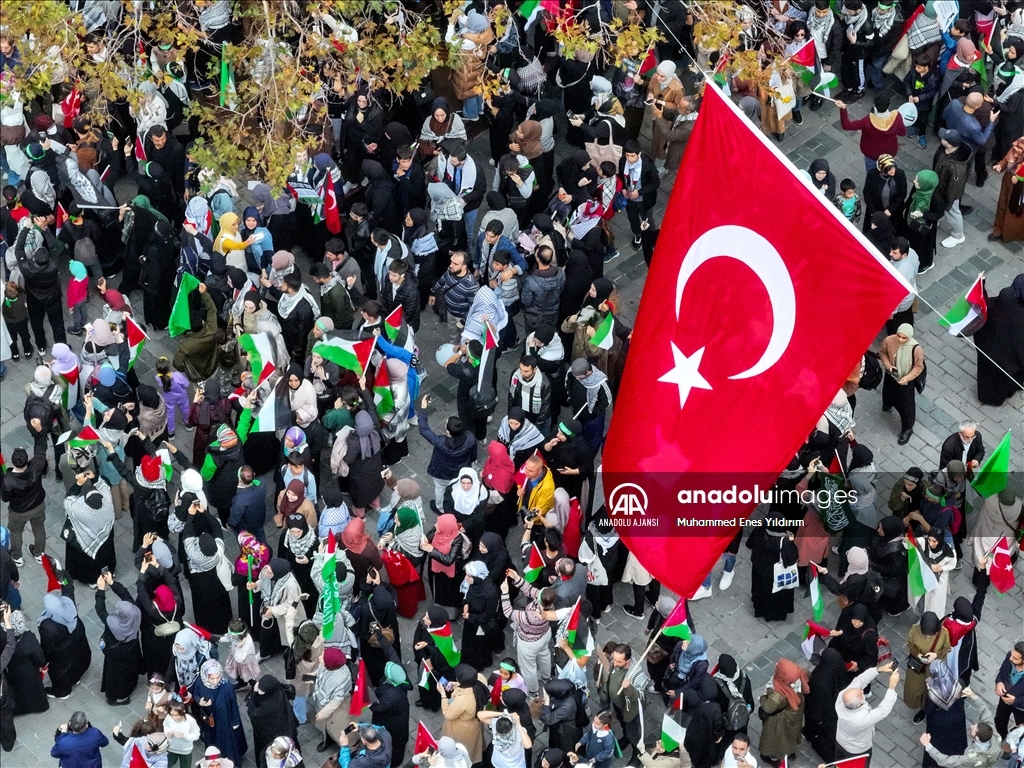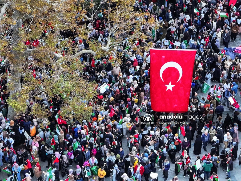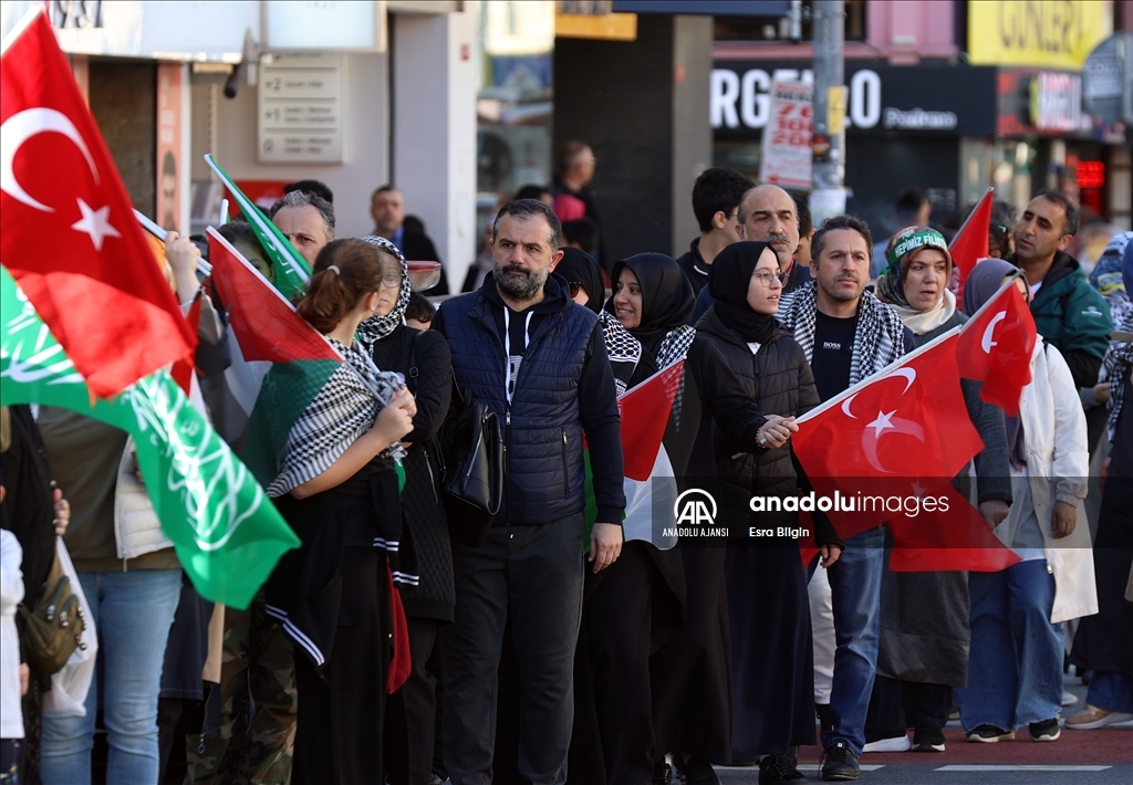 Filistin İnisiyatifi Platformu, İsrail'in Gazze saldırılarını protesto etmek için Edirnekapı'dan Beyazıt'a kadar insan zinciri oluşturdu. ( Muhammed Enes Yıldırım - Anadolu Ajansı )Muhammed Enes Yıldırım