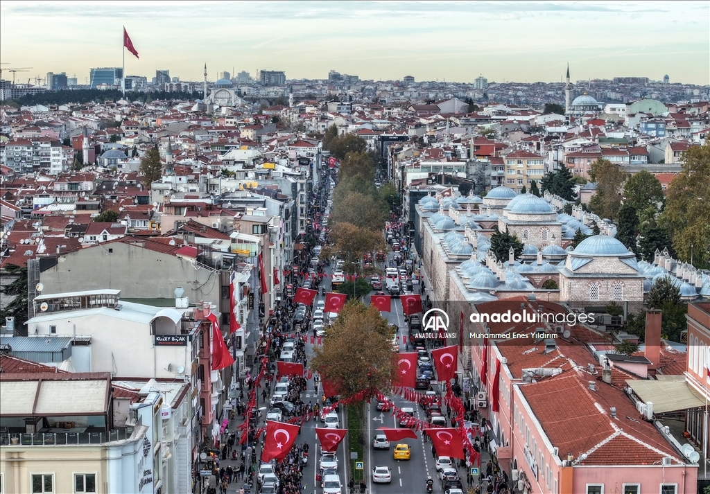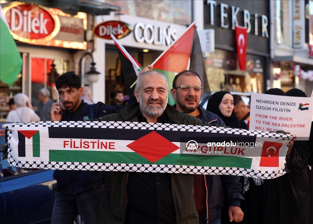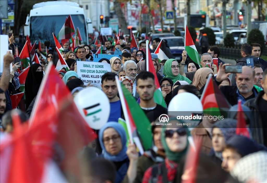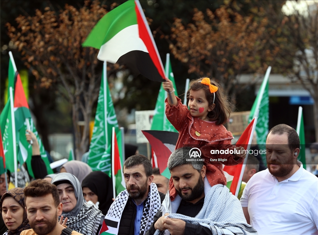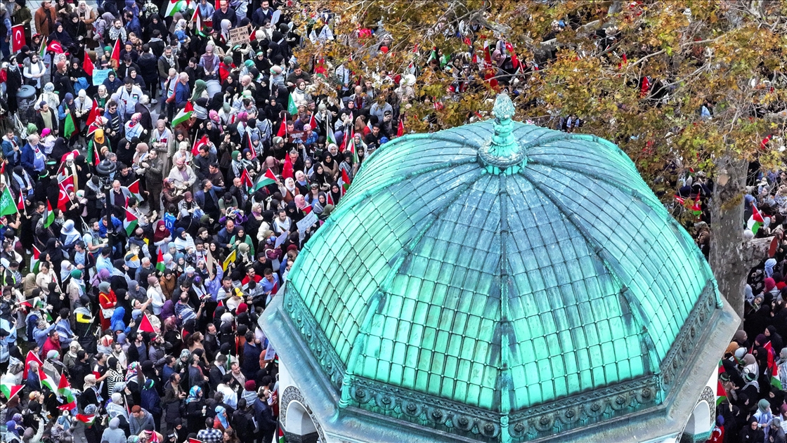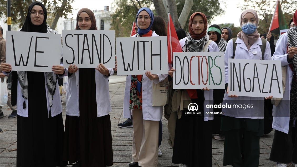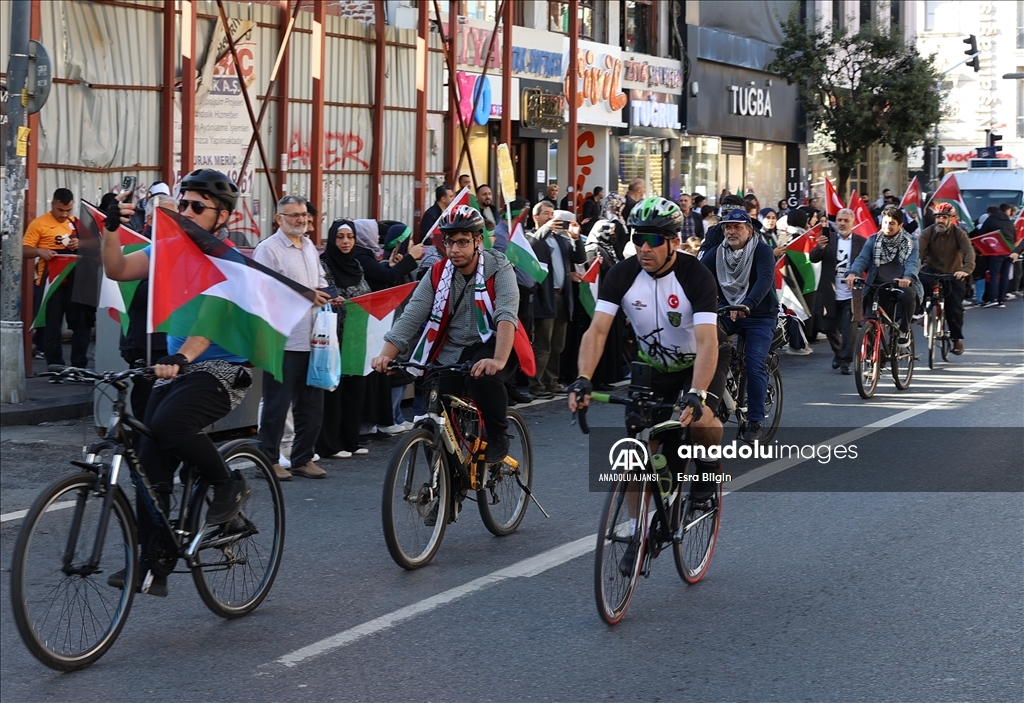 Filistin İnisiyatifi Platformu, İsrail'in Gazze saldırılarını protesto etmek için Edirnekapı'dan Beyazıt'a kadar insan zinciri oluşturdu. ( Muhammed Enes Yıldırım - Anadolu Ajansı )Muhammed Enes Yıldırım