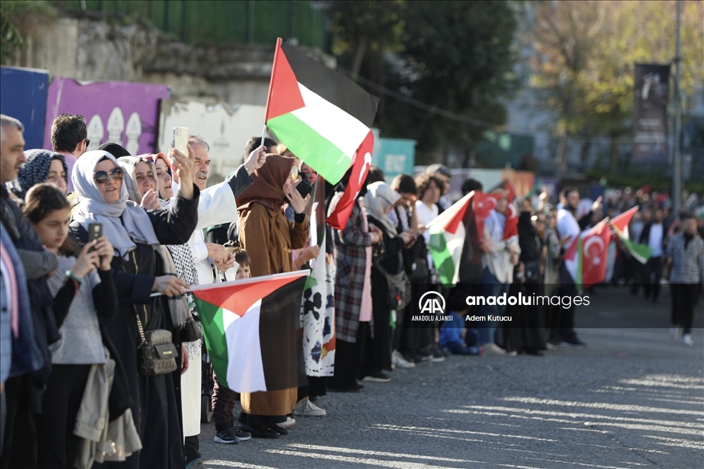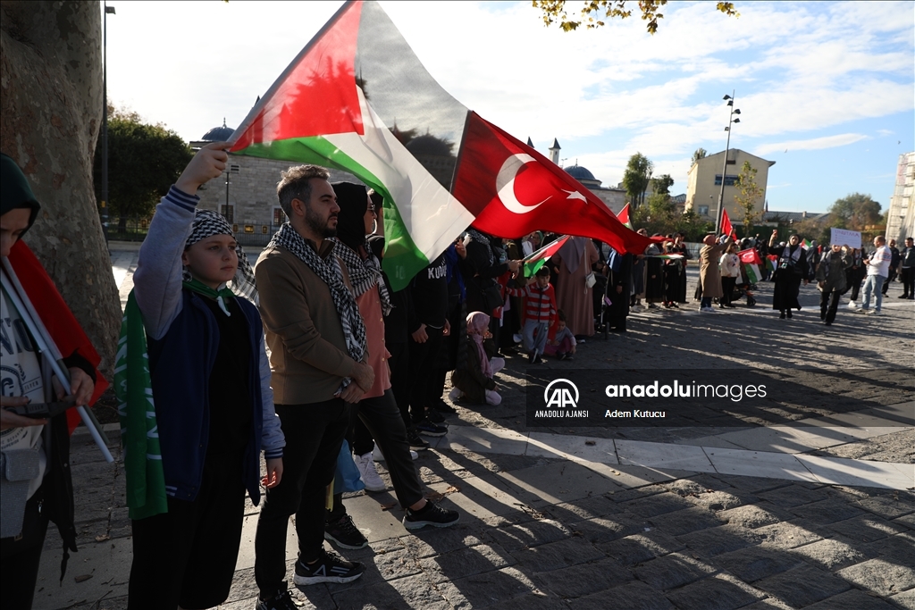 Filistin İnisiyatifi Platformu, İsrail'in Gazze saldırılarını protesto etmek için Edirnekapı'dan Sultanahmet meydanına kadar insan zinciri oluşturdu. ( Muhammed Enes Yıldırım - Anadolu Ajansı )Muhammed Enes Yıldırım