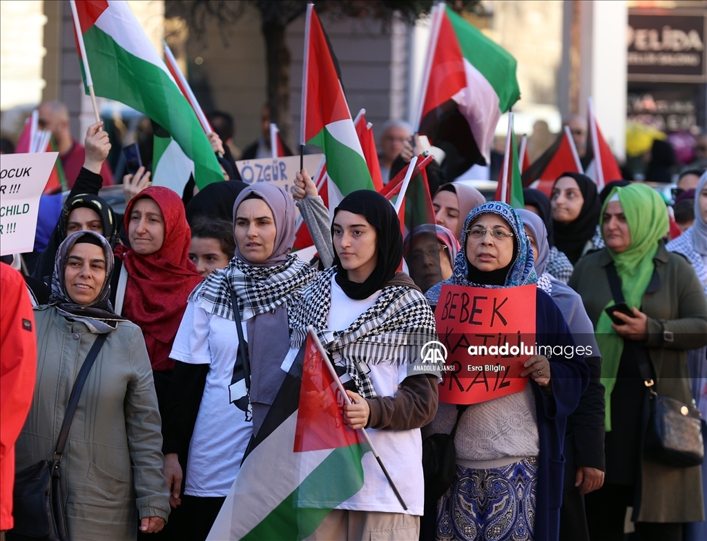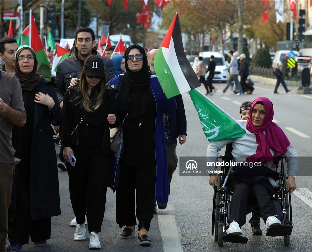 Filistin İnisiyatifi Platformu, İsrail'in Gazze saldırılarını protesto etmek için Edirnekapı'dan Beyazıt'a kadar insan zinciri oluşturdu. ( Esra Bilgin - Anadolu Ajansı )Esra Bilgin