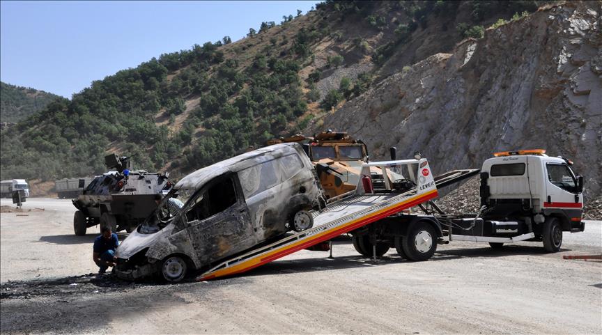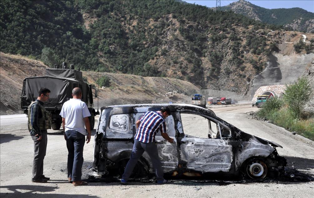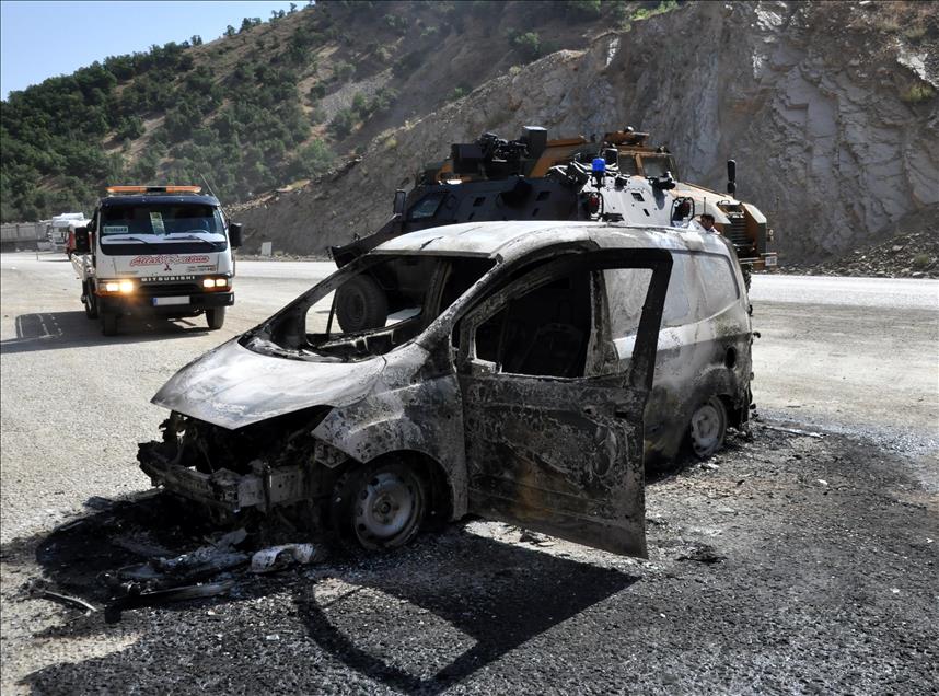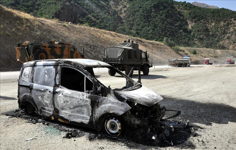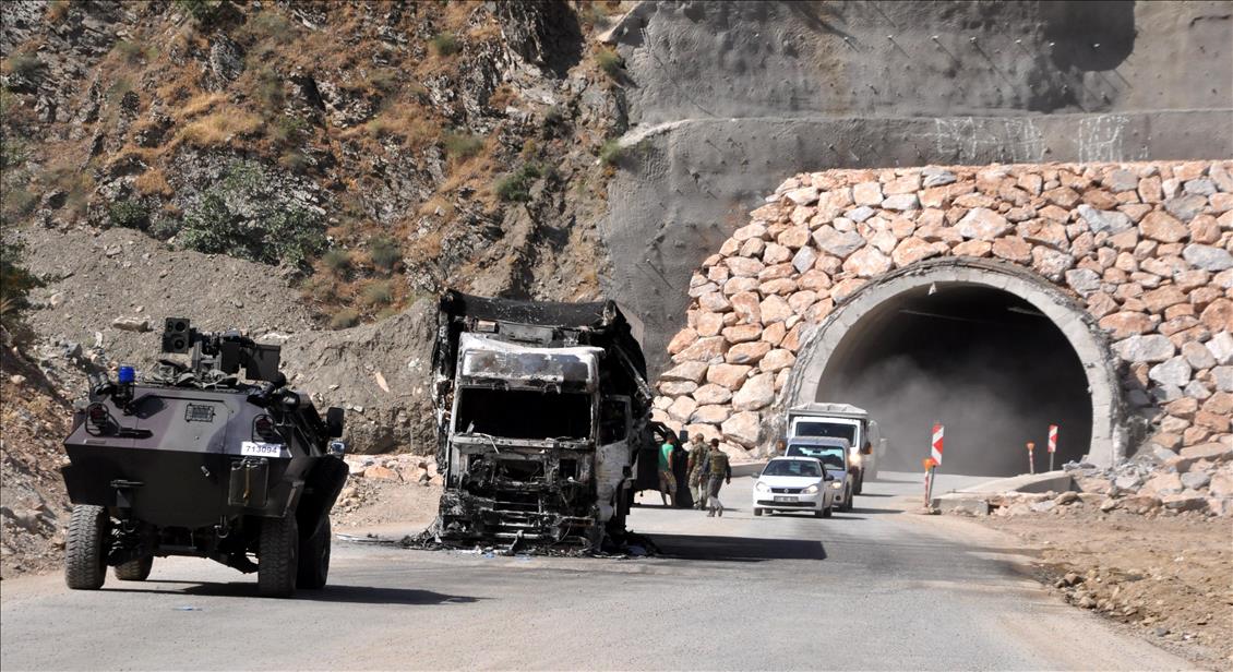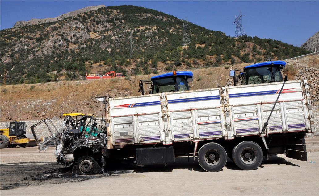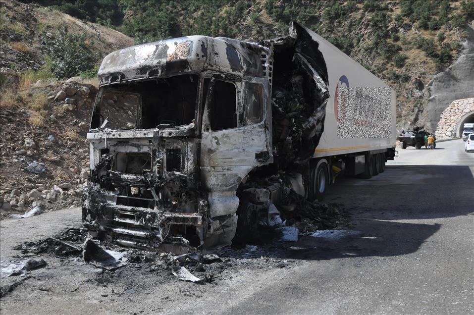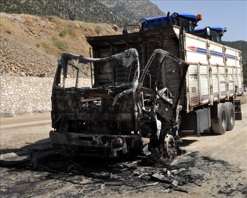 Bitlis-Diyarbakır karayolunda dün teröristlerin ateşe verdiği bir tır, bir kamyon ve bir kamyonet, yoldan kaldırıldı. Yakılan araçlar, sabah saatlerinde alınan yoğun güvenlik önlemleri altında yoldan kaldırıldı. Teröristlerin yakalanması için bölgede başlatılan geniş çaplı operasyon sürüyor. (Şener Toktaş - Anadolu Ajansı)Şener Toktaş