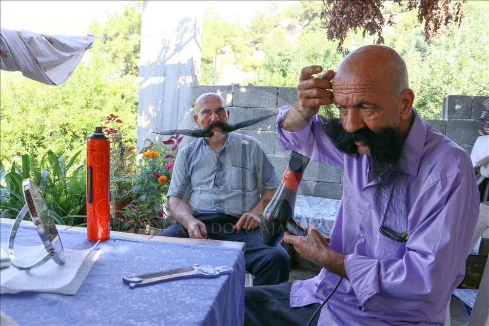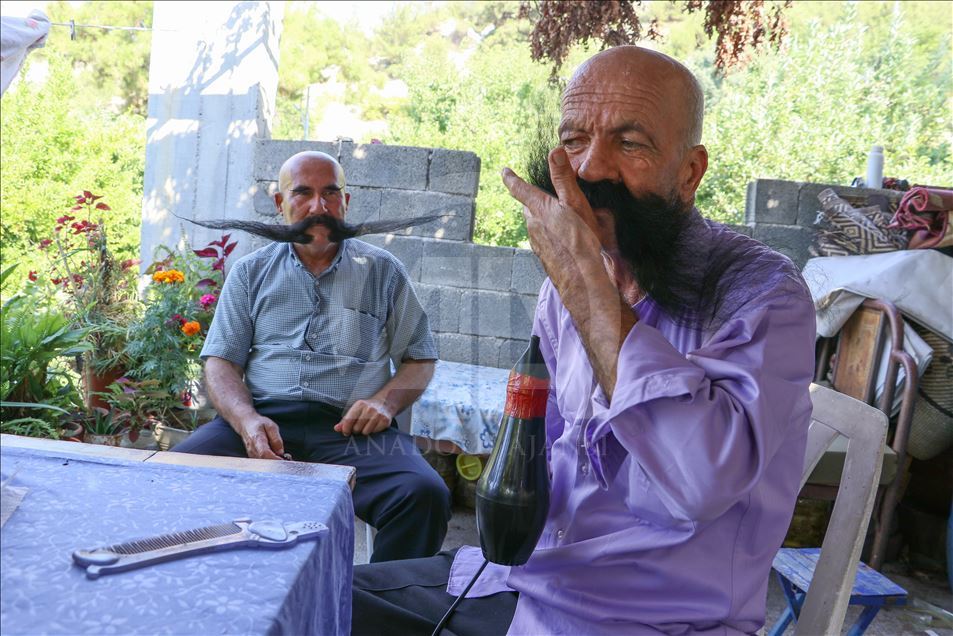 Hatay'da 20 yıldır hiç kesmedikleri bıyıklarını 80 santimetreye kadar uzatmayı başaran iki kuzen, haftada bir bakım yaptırıp saç kurutma makinesi ve saç spreyi kullanarak şekil verdikleri bıyıklarıyla ilgi odağı haline geldi. Kuzenler Mehmet Kurtulan (sağda) ve Hüseyin Gündüz (solda) hayatlarını bu şekilde devam ettirmeye kararlı. ( Burak Milli - Anadolu Ajansı )Burak Milli