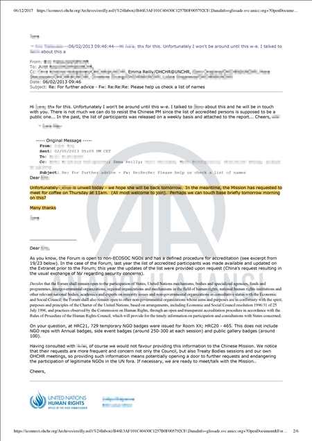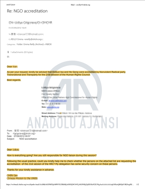 Birleşmiş Milletler İnsan Hakları Yüksek Komiserliğinin (OHCHR), başta Uygur aktivistler olmak üzere, Tibetli, Hong Konglu muhaliflerin isimlerini Çin hükümetiyle paylaştığına ilişkin iddialar, Anadolu Ajansının (AA) ulaştığı yazışmalarla yeni bir boyut kazandı. OHCHR çalışanları arasında yapılan e-posta yazışmalarının yanı sıra basın bildirileri ve röportajlar, BM'nin geçmişte insan hakları konusunda sıklıkla düzenlediği panel, konferans ve açık oturum gibi etkinliklere katılan çok sayıda Çinli aktivist ve diğer bazı muhaliflerin isimlerini, BM'de görevli Çin delegasyonuyla paylaştığını ortaya koyuyor. ( AA - Anadolu Ajansı )AA