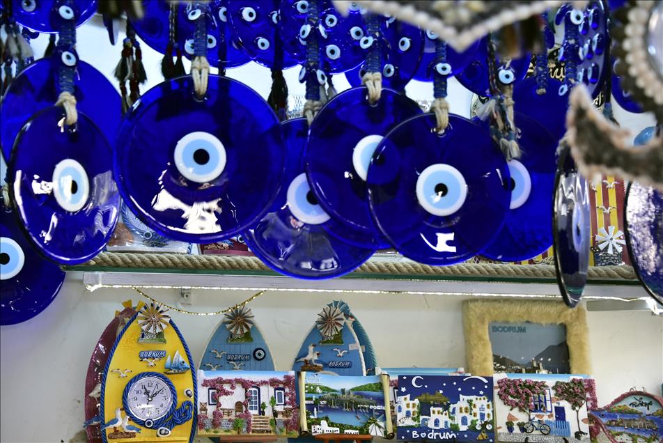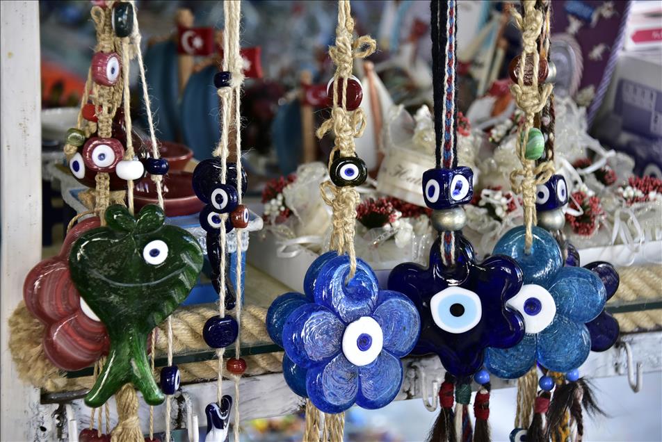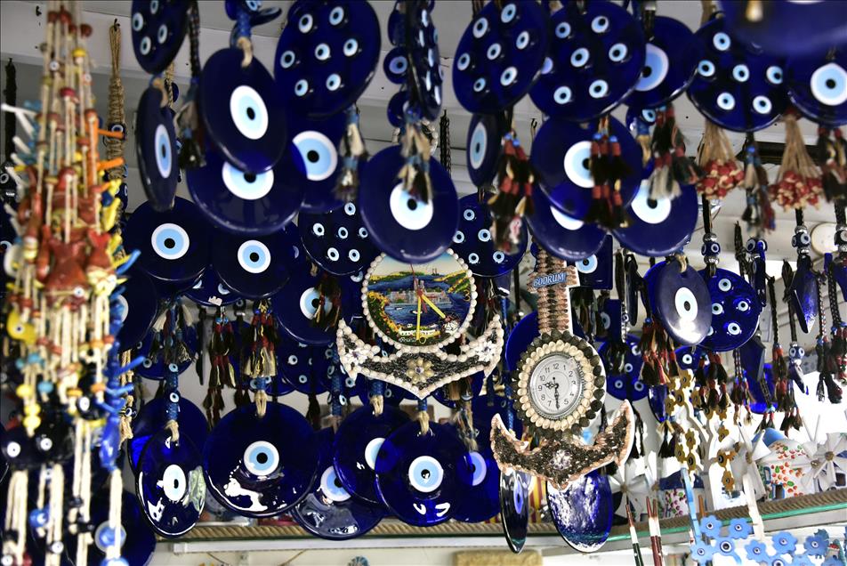 Türkiye'nin gözde turizm merkezinden Muğla'nın Bodrum ilçesinde yaşayan Halit Arabalı, 53 yıldır nazar boncuğu üretiyor. Boncukları, minyatür hediyelik eşyaların üzerine de işleyen Arabalı, nazar boncuğu kültürünü geleceğe taşıyor. ( Ali Ballı - Anadolu Ajansı )Ali Ballı