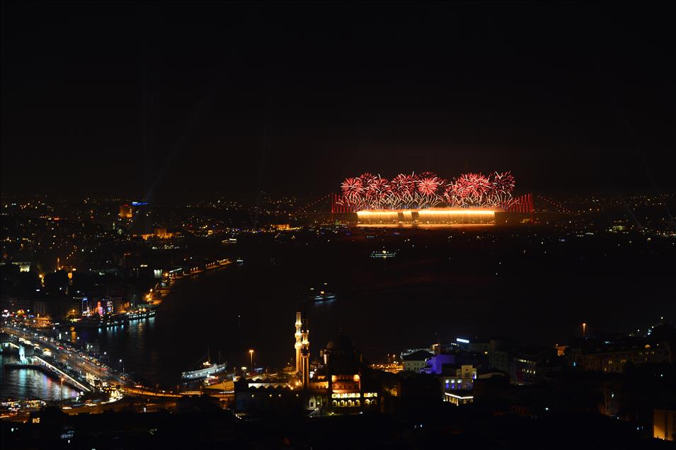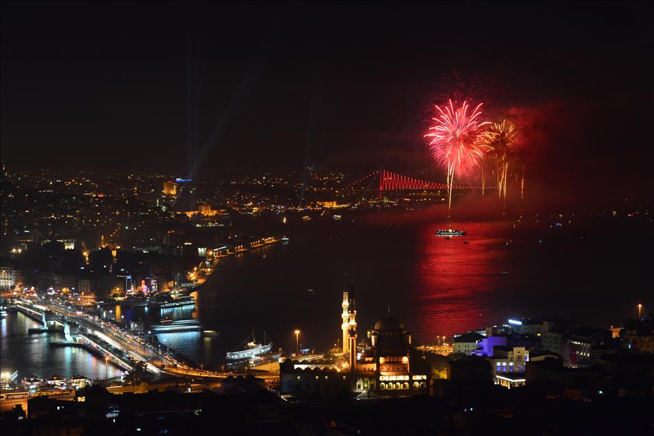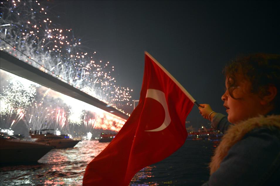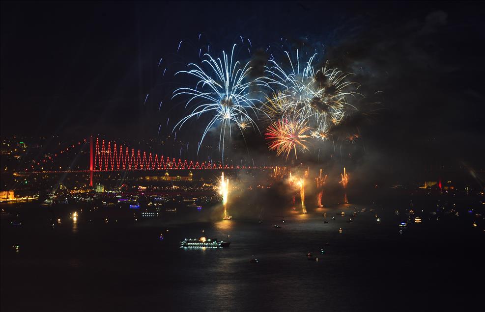 29 Ekim Cumhuriyet bayramı kutlamaları çerçevesinde İstanbul Boğazı'nda havai fişek gösterisi düzenlendi. (Yakup Çabuk - Anadolu Ajansı)Yakup Çabuk