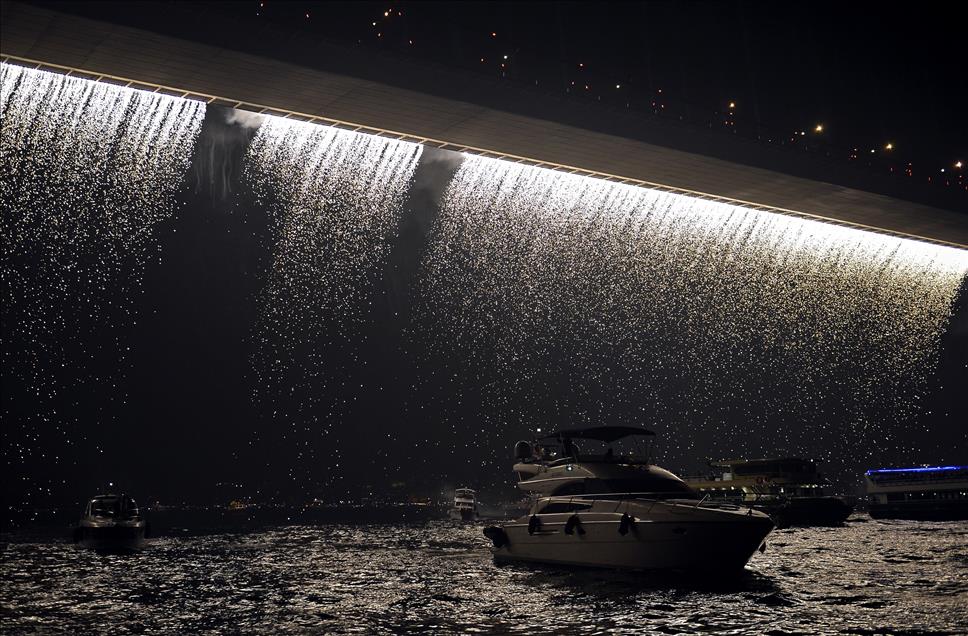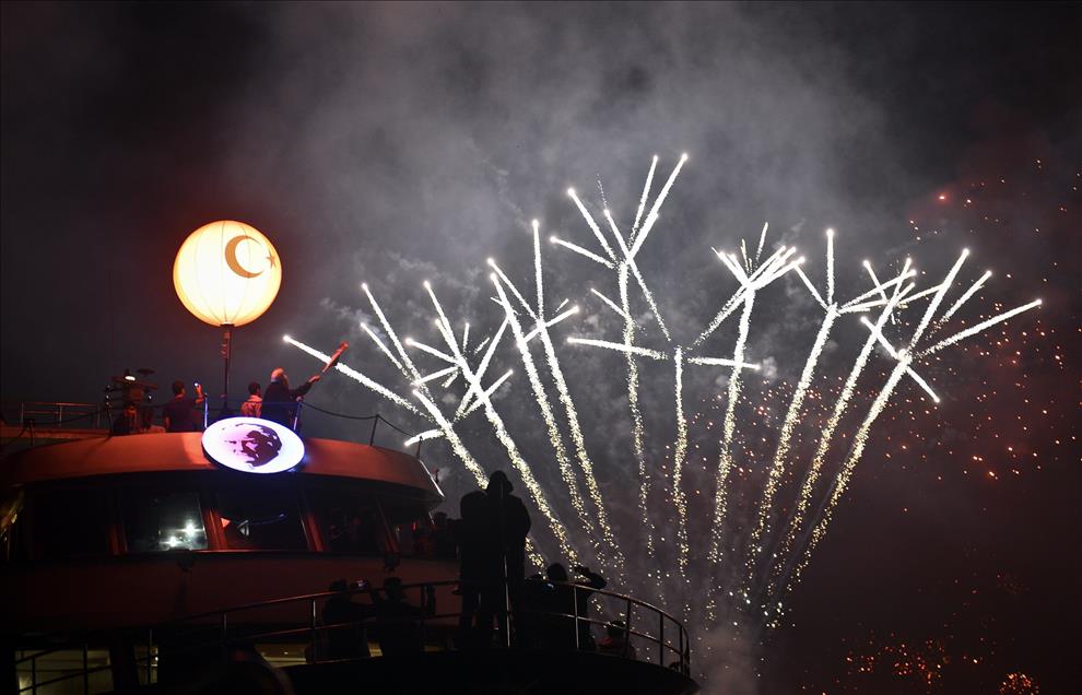 İstanbul Boğazı'nda Işık ve Havai Fişek Gösterisi