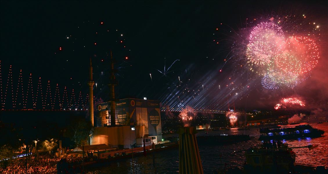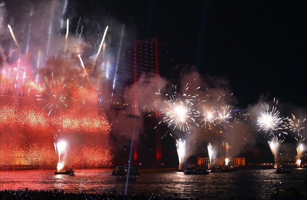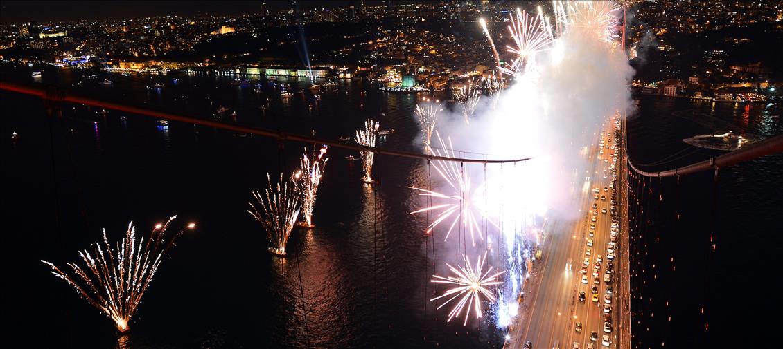ISTANBUL BUYUKSEHIR BELEDIYESI 29 EKIM CUMHURIYET BAYRAMI ETKINLIKLERI CERCEVESINDE BOGAZ KOPRUSU VE ISTANBUL BOGAZI'NDA ISIK VE HAVAI FISEK GOSTERISI DUZENLEDI. (ANADOLU AJANSI - ERHAN ELALDI) (20121029)ERHAN ELALDI