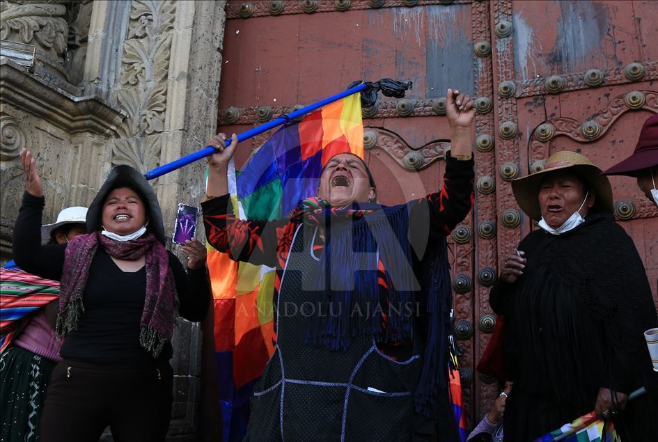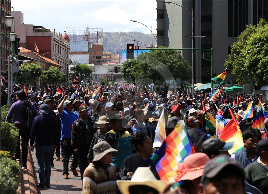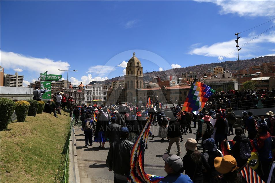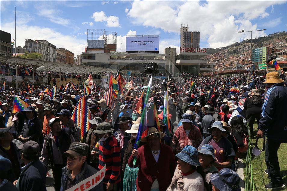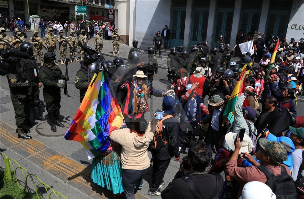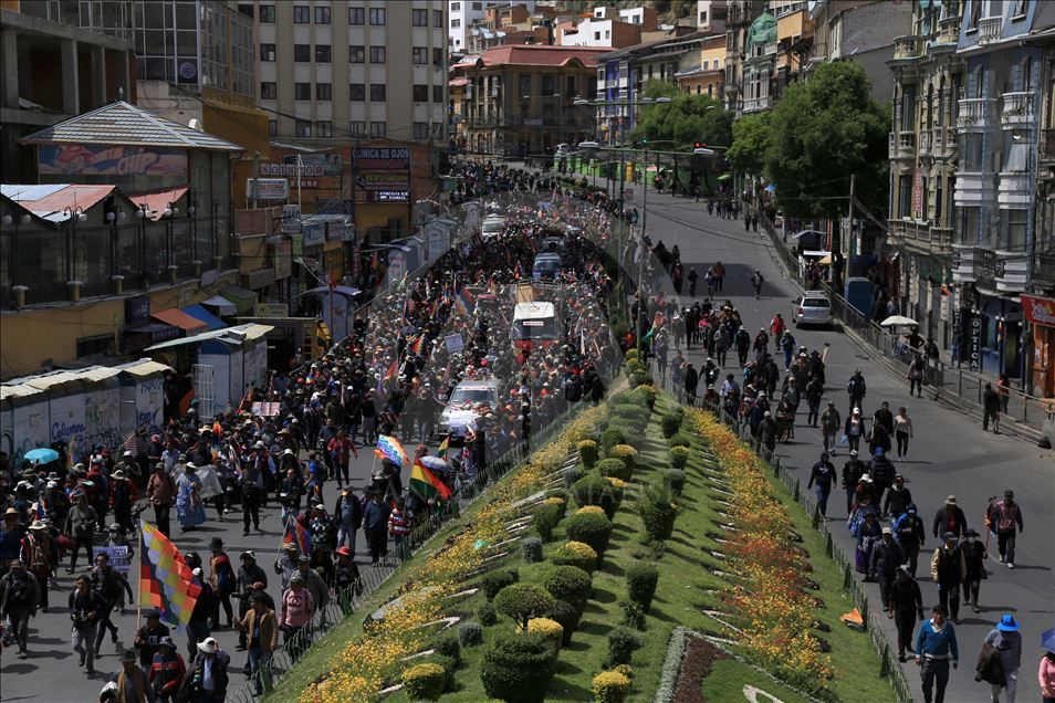 Bolivya'nın başkenti La Paz, önceki gün kentin bitişiğindeki şehir El Alto'da güvenlik güçlerinin müdahalesinde hayatını kaybedenler için düzenlenen adalet yürüyüşüne ev sahipliği yaptı. Ülkede istifa eden Devlet Başkanı Evo Morales'in yerine geçici devlet başkanlığına getirilen Jeanine Anez'in istifasını isteyen kişiler, operasyona hayatını kaybedenlerin cenazelerini kentin tarihi merkezine kadar taşıdı. Polis, Hükümet sarayının da bulunduğu Murillo Meydanı'na ilerlemek isteyen ve göz yaşartıcı gazla dağıttığı gruptan bazı kişileri gözaltına aldı. ( Lokman İlhan - Anadolu Ajansı )Lokman İlhan