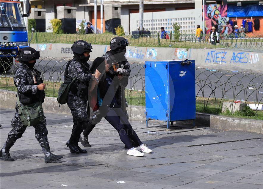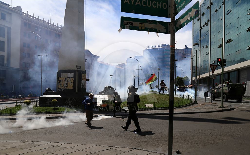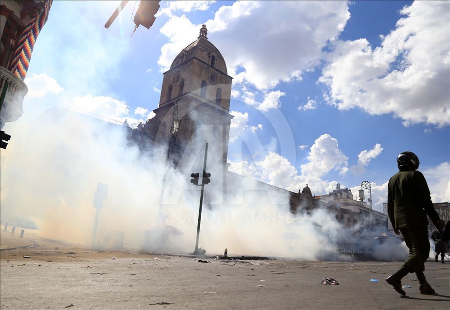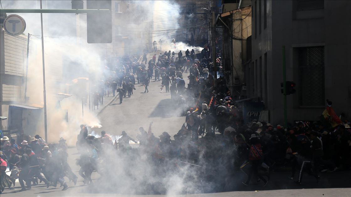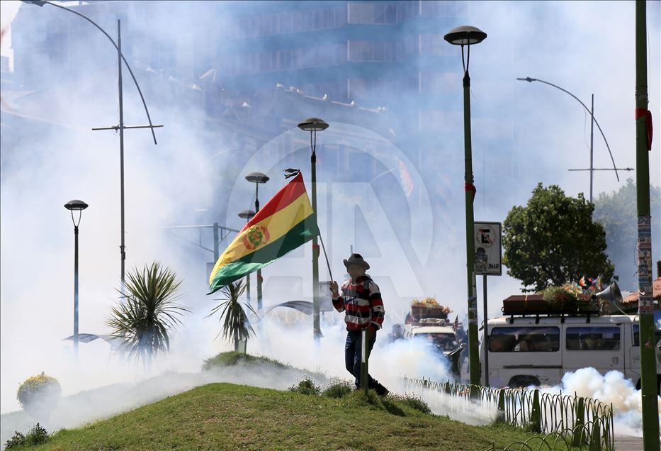 Bolivya'nın başkenti La Paz, önceki gün kentin bitişiğindeki şehir El Alto'da güvenlik güçlerinin müdahalesinde hayatını kaybedenler için düzenlenen adalet yürüyüşüne ev sahipliği yaptı. Ülkede istifa eden Devlet Başkanı Evo Morales'in yerine geçici devlet başkanlığına getirilen Jeanine Anez'in istifasını isteyen kişiler, operasyona hayatını kaybedenlerin cenazelerini kentin tarihi merkezine kadar taşıdı. Hükümet Sarayının da bulunduğu Murillo Meydanı'na ilerlemek isteyen gruba polisin göz yaşartıcı gazla müdahalesinden bölgedeki birçok kişi etkilendi. ( Lokman İlhan - Anadolu Ajansı )Lokman İlhan