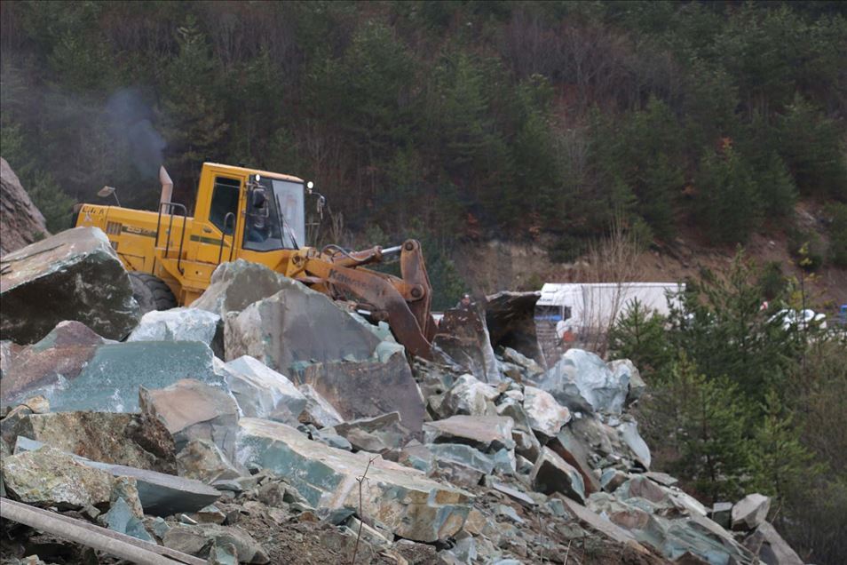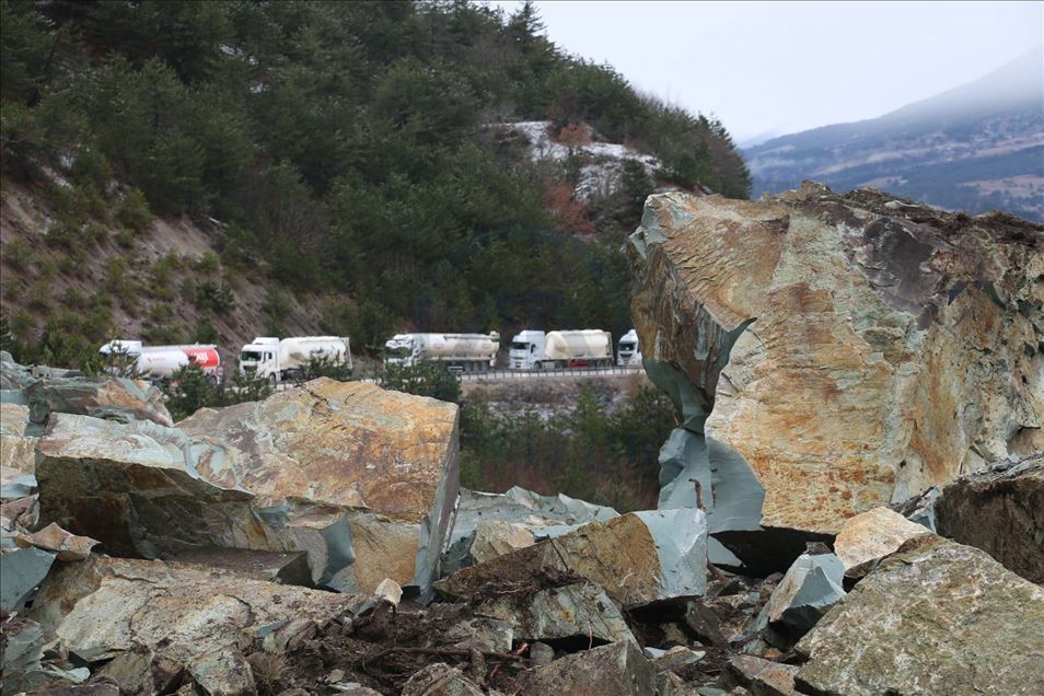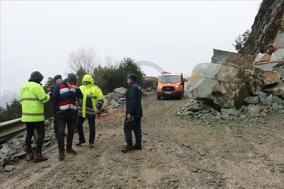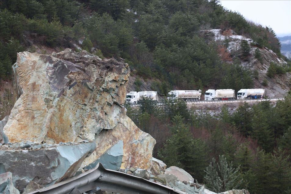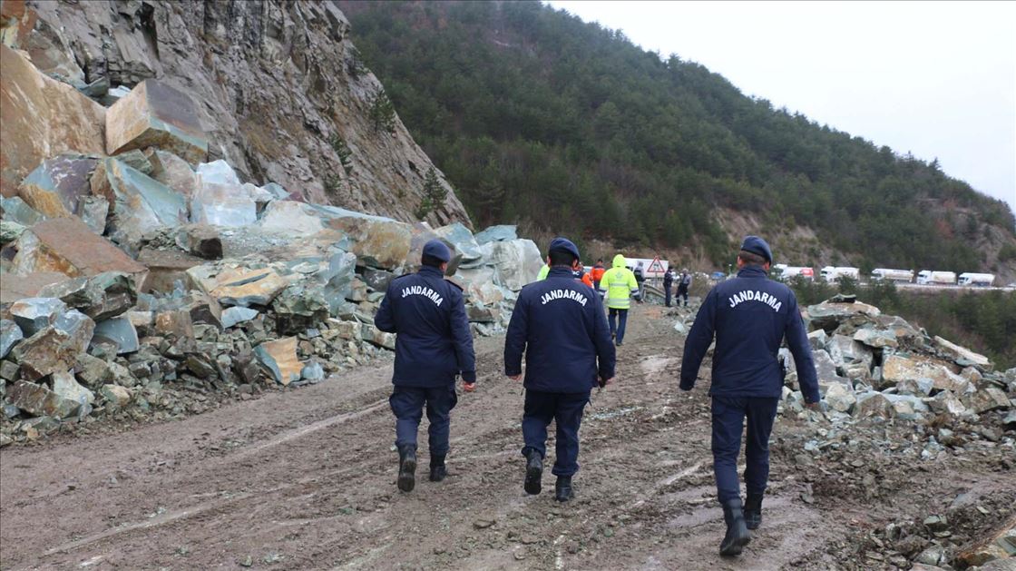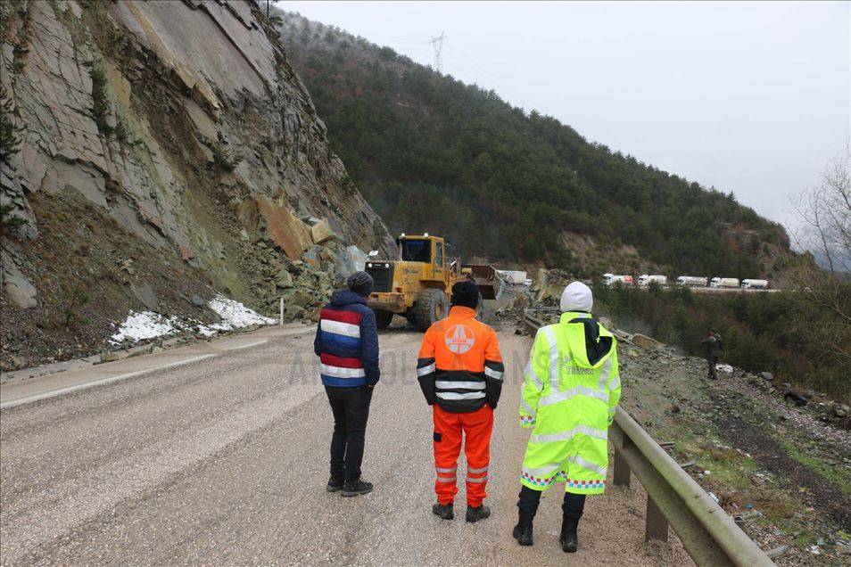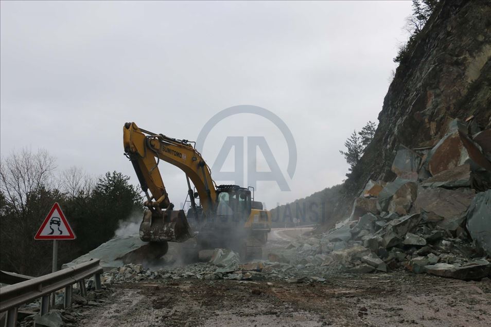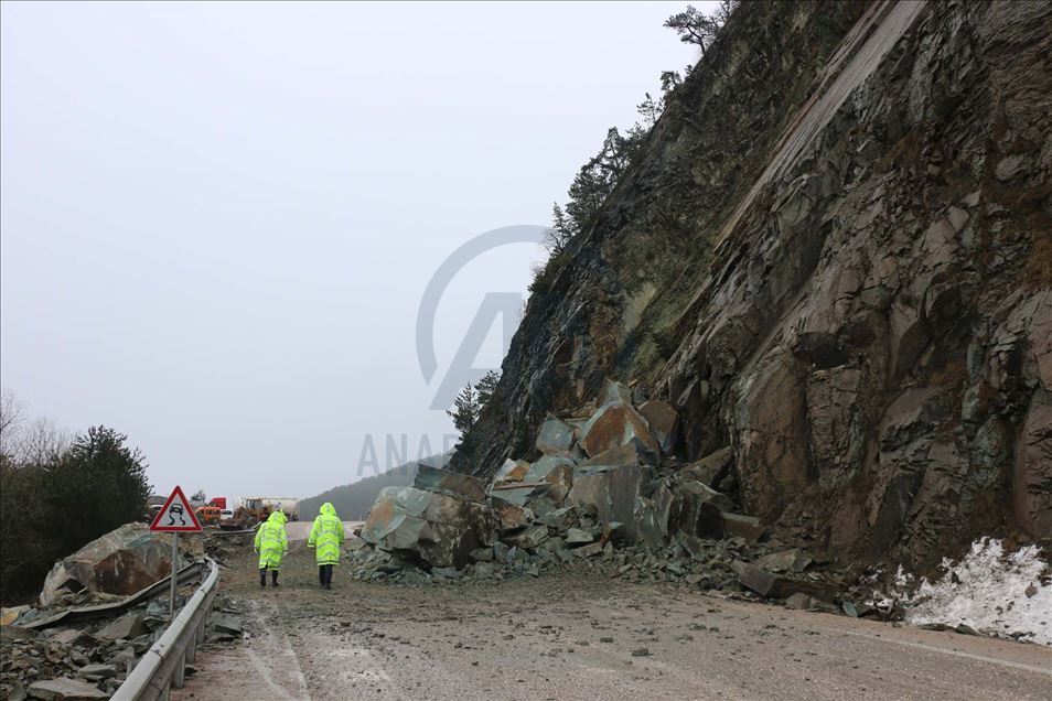 Etkili olan sağanak nedeniyle Mudurnu-Ankara kara yolunda heyelan meydana geldi. ( İlhami Çetin - Anadolu Ajansı )