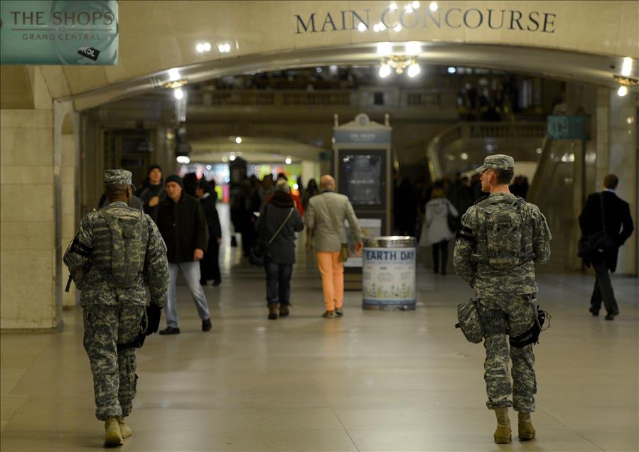 ABD'NIN BOSTON KENTINDEKI MARATON SIRASINDA MEYDANA GELEN PATLAMALARIN ARDINDAN ULKE GENELINDE GUVENLIK TEDBIRLERI ARTIRILDI. NEW YORK'TAKI TIMES MEYDANINDA POLISLERIN GUVENLIK ONLEMLERINI ARTIRDIGI DIKKAT CEKTI. (ANADOLU AJANSI - CEM OZDEL) (20130416)CEM OZDEL