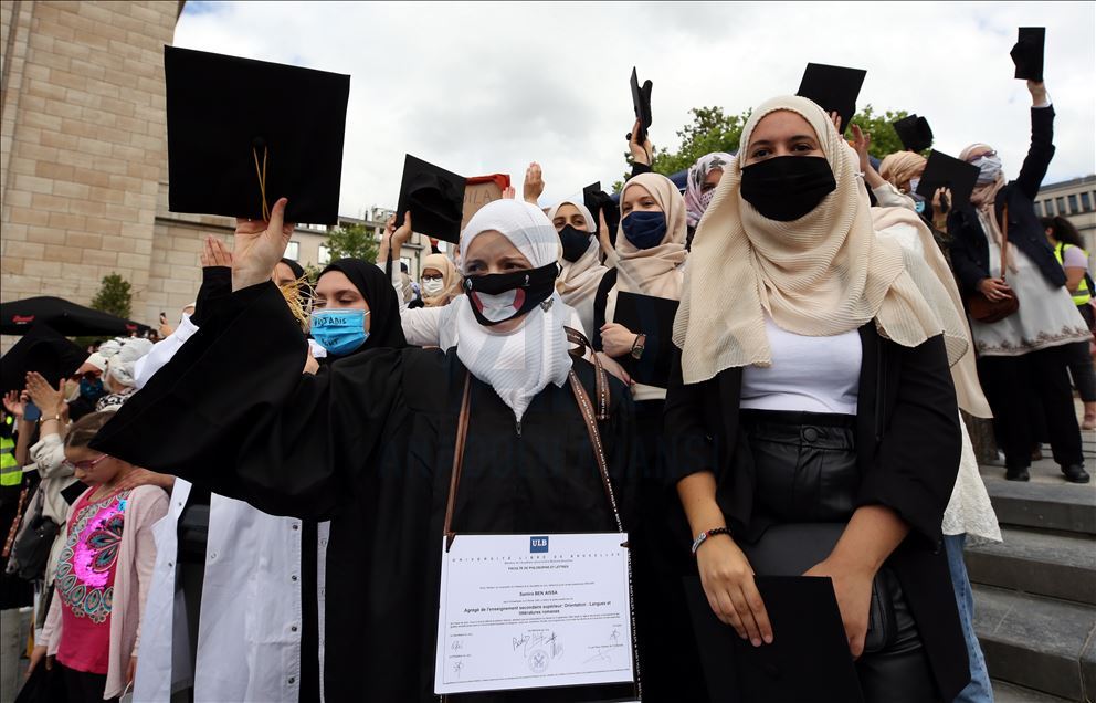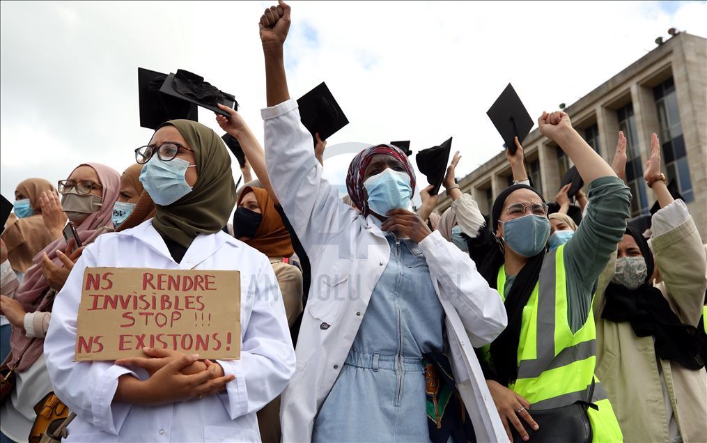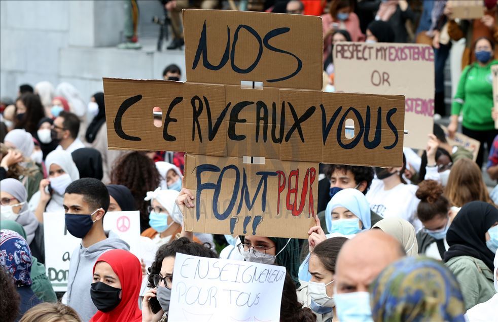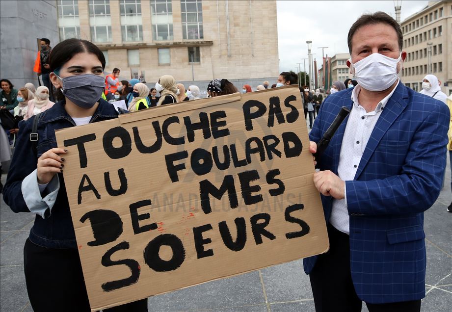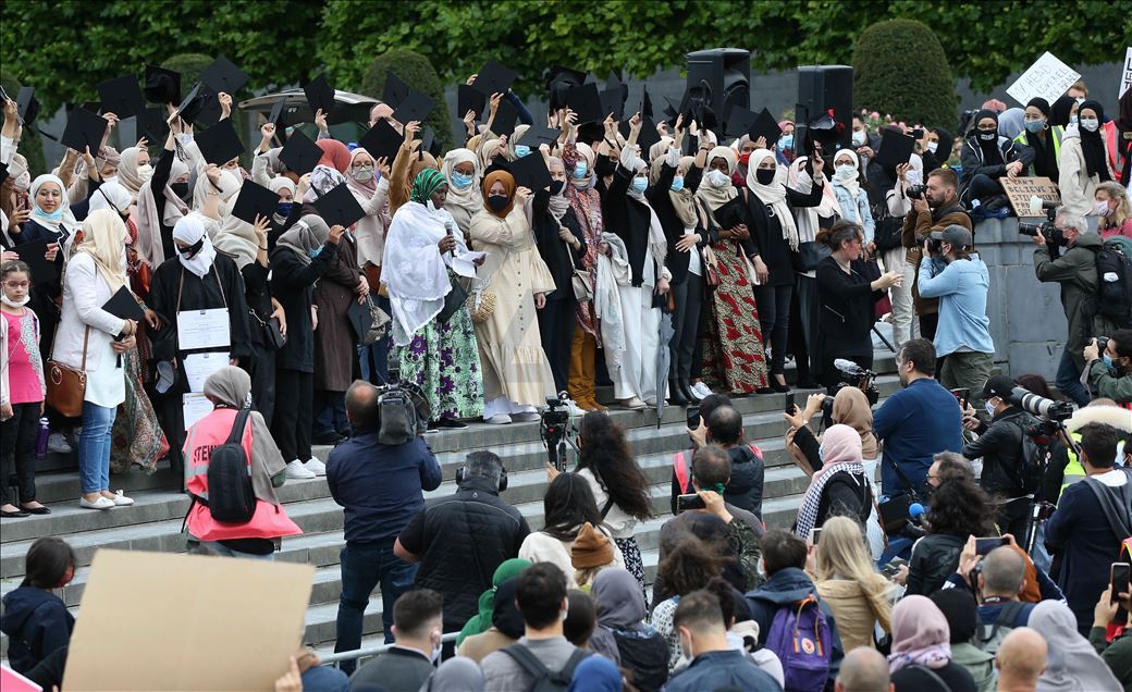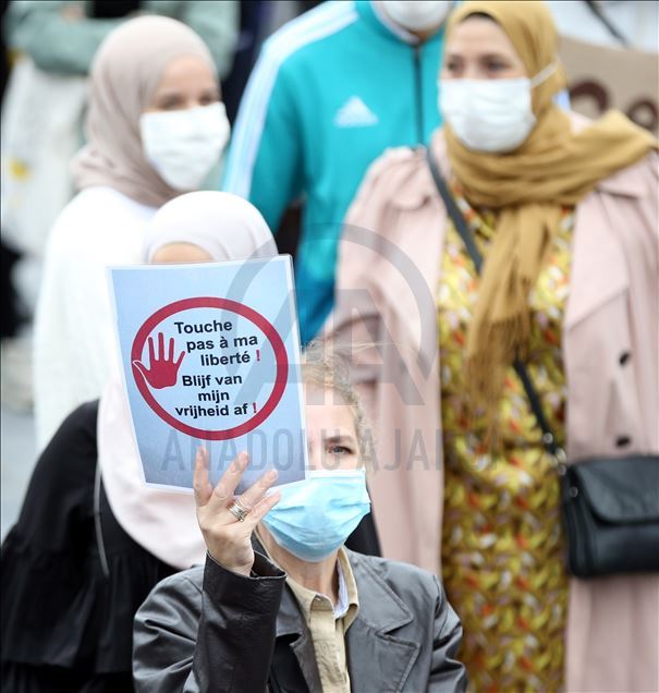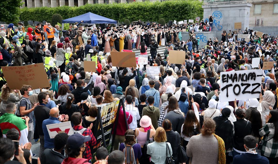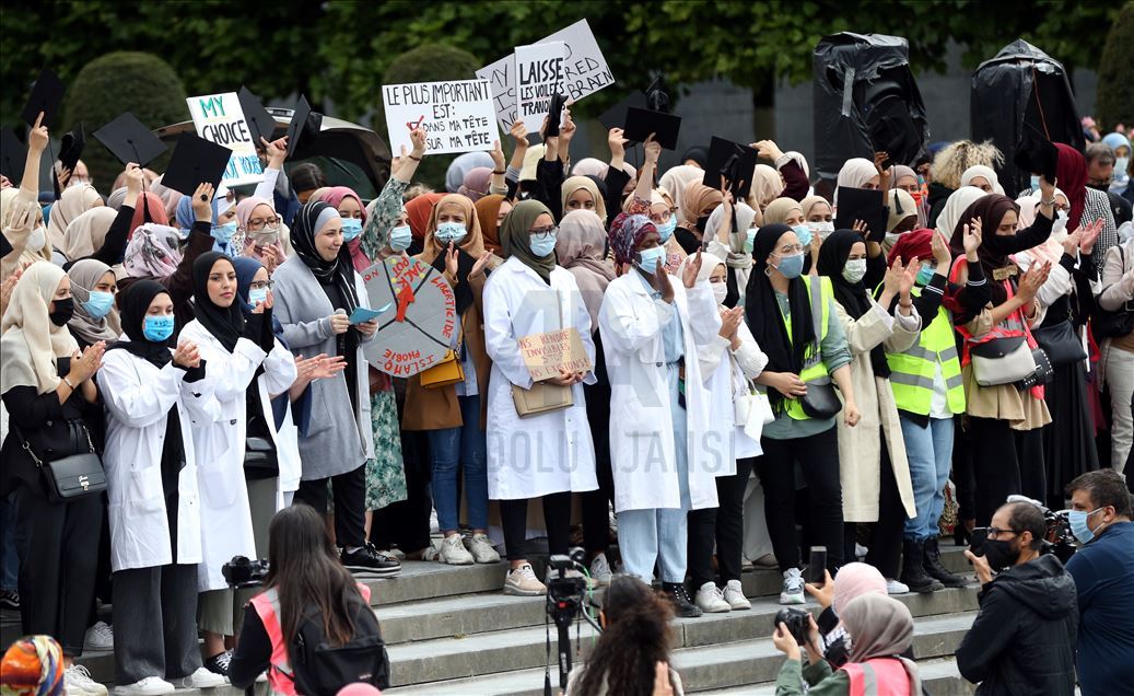 Çeşitli sivil toplum kuruluşlarının çağrısı üzerine, Brüksel merkezindeki Mont des Arts meydanında yaklaşık 4 bin kişi buluştu. "Başörtüsü insan hakkıdır", "Elini başörtümden çek", "Özgürlüğümüz nerede?", "Eğitimime dokunma", "Benim hakkım" ve "Yeter" yazlı afişler taşıyan göstericiler, başörtüsüne destek sloganları attı.