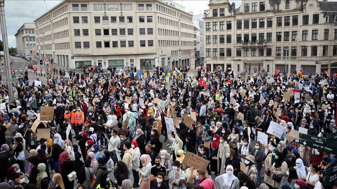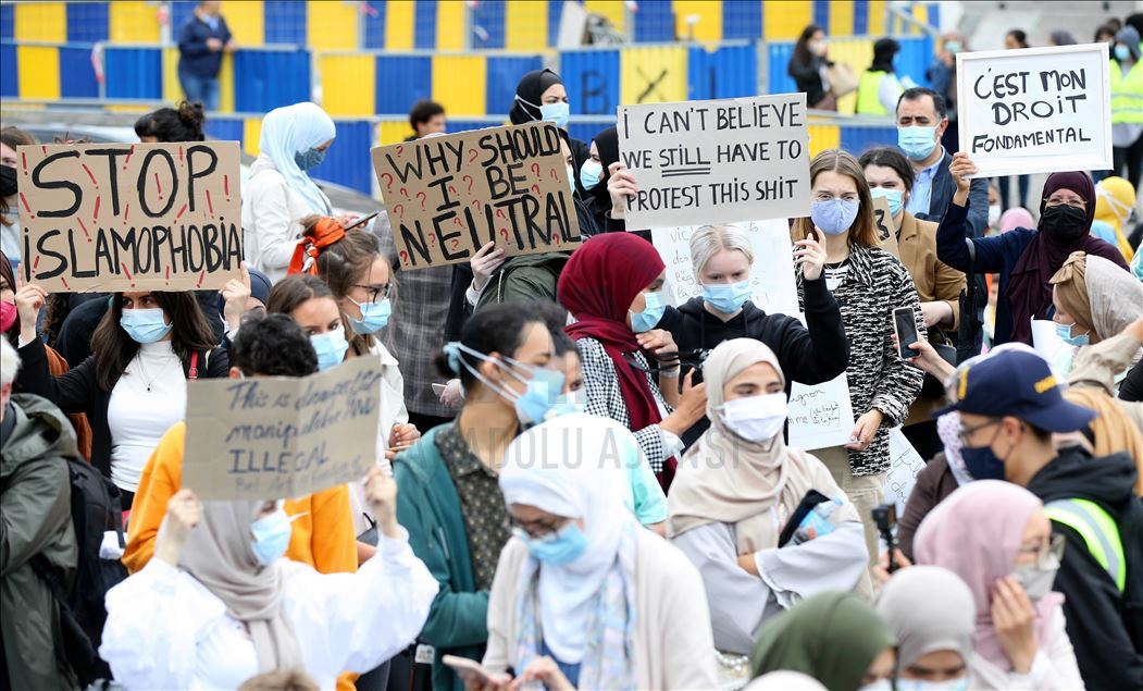 Brüksel'de başörtüsü yasağı protestosu