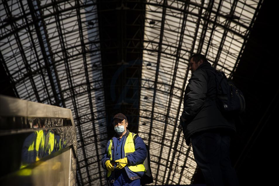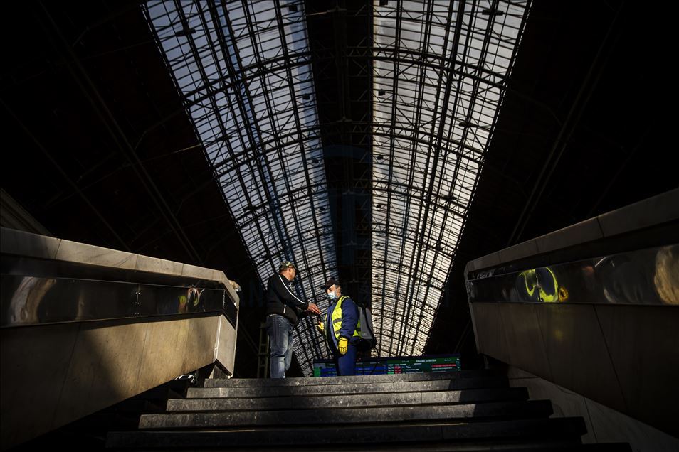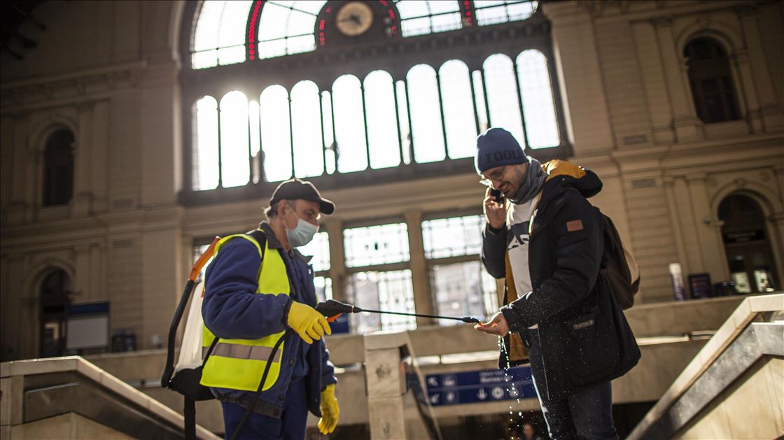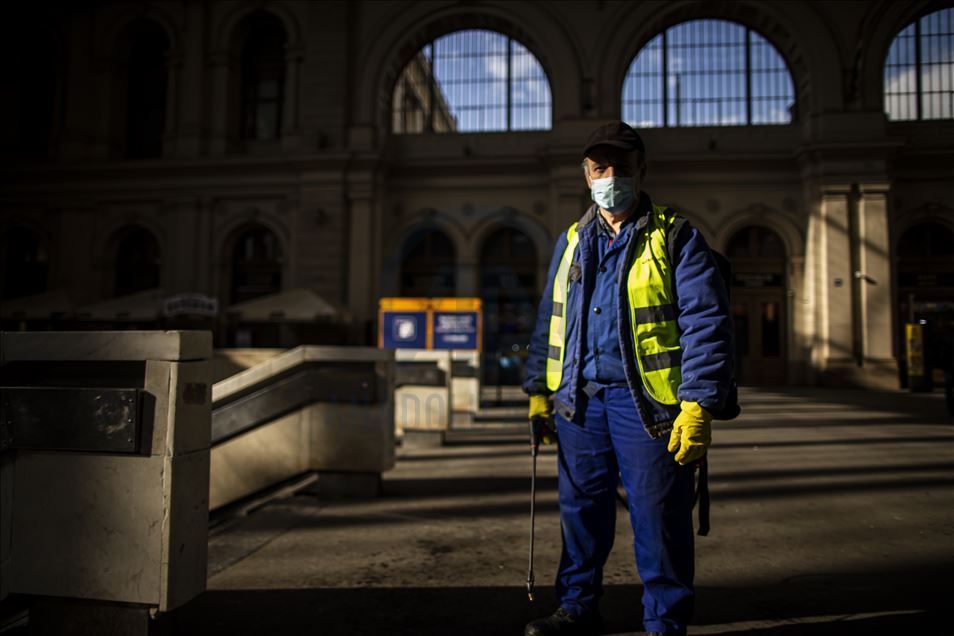 Macaristan'ın başkenti Budapeşte'de yeni tip koronavirüs (Kovid-19) salgını ile mücadele kapsamında Keleti Tren İstasyonu dezenfekte edildi. ( Arpad Kurucz - Anadolu Ajansı )Arpad Kurucz