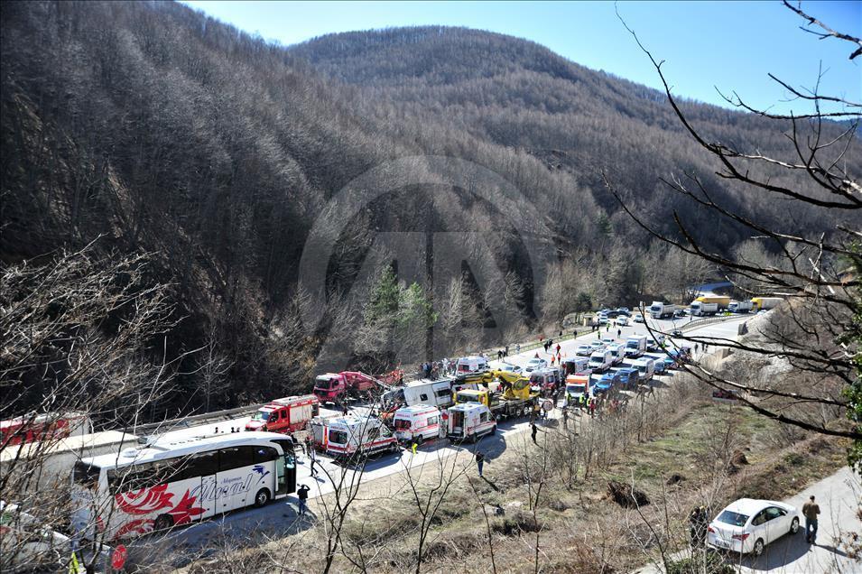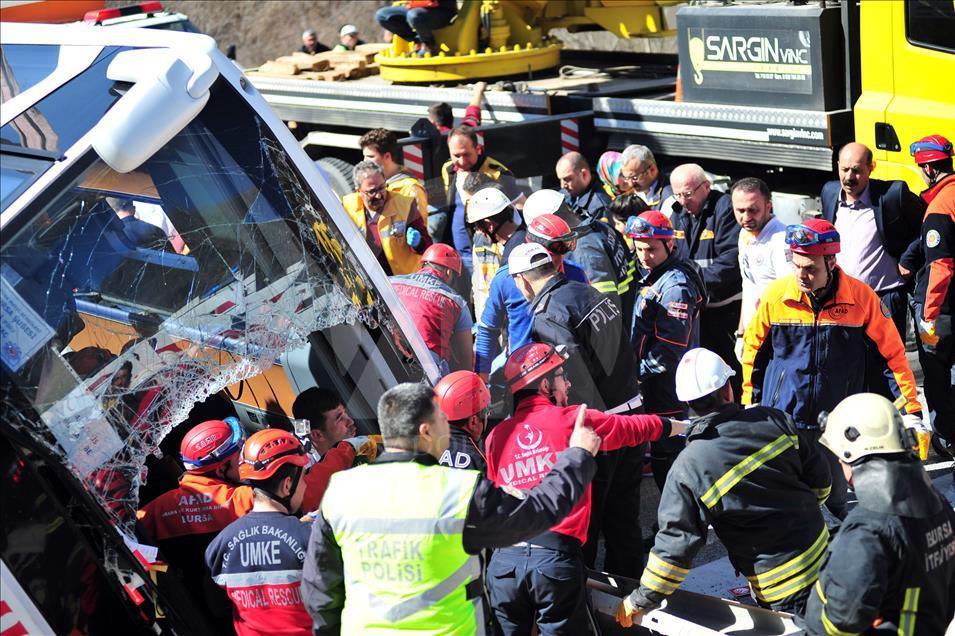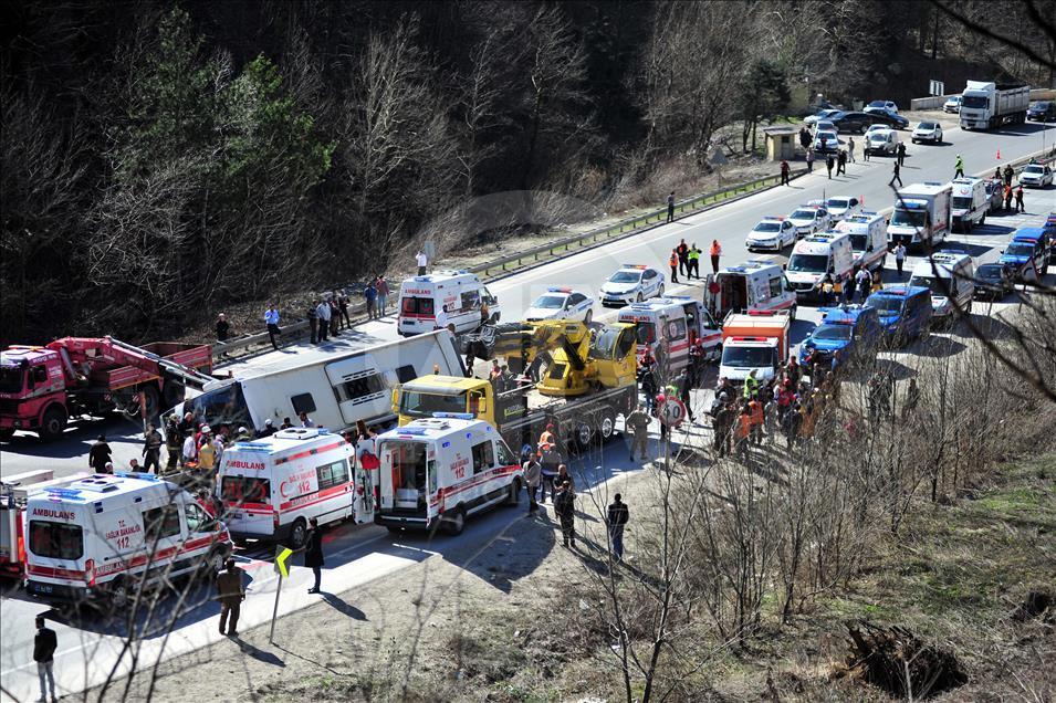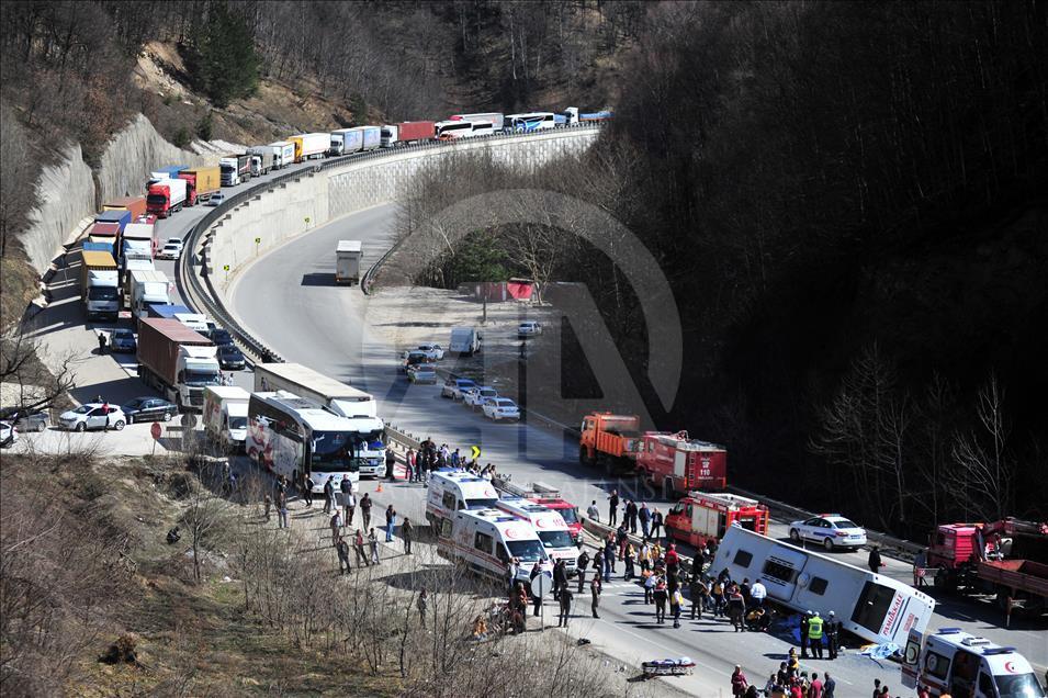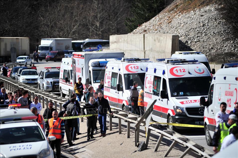 Bursa-Ankara karayolunun Mezitler mevkisinde yolcu otobüsünün devrildiği kazada ölü ve yaralılar olduğu bildirildi.