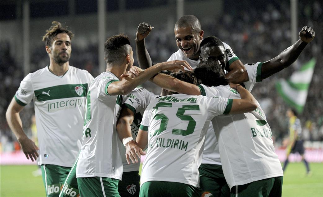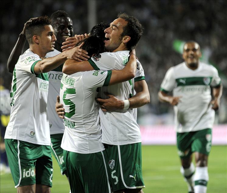 BURSASPOR, SPOR TOTO SUPER LIG'IN 8. HAFTASINDA FENERBAHCE ILE KARSILASTI. BURSASPOR'LU FUTBOLCULARIN GOL SEVINCI. (ANADOLU AJANSI - TARIK UZGUN) (20121020)TARIK UZGUN
