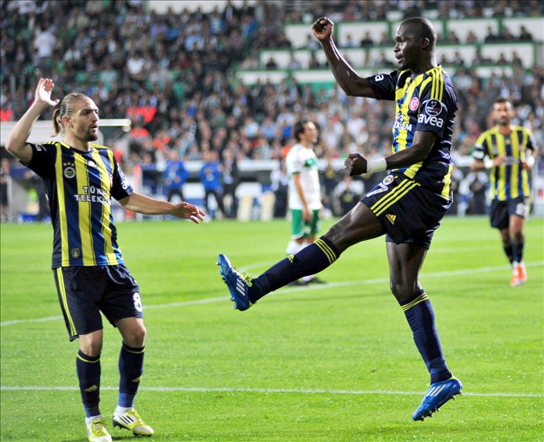 SPOR TOTO SUPER LIGI'NDE BURSASPOR ILE FENERBAHCE KARSILASTI. FENERBAHCELI FUTBOLCU MOUSSA SOW ATTIGI GOLUN ARIDINDAN BUYUK SEVINC YASADI. (ANADOLU AJANSI - ALI ATMACA) (20121020)ALI ATMACA