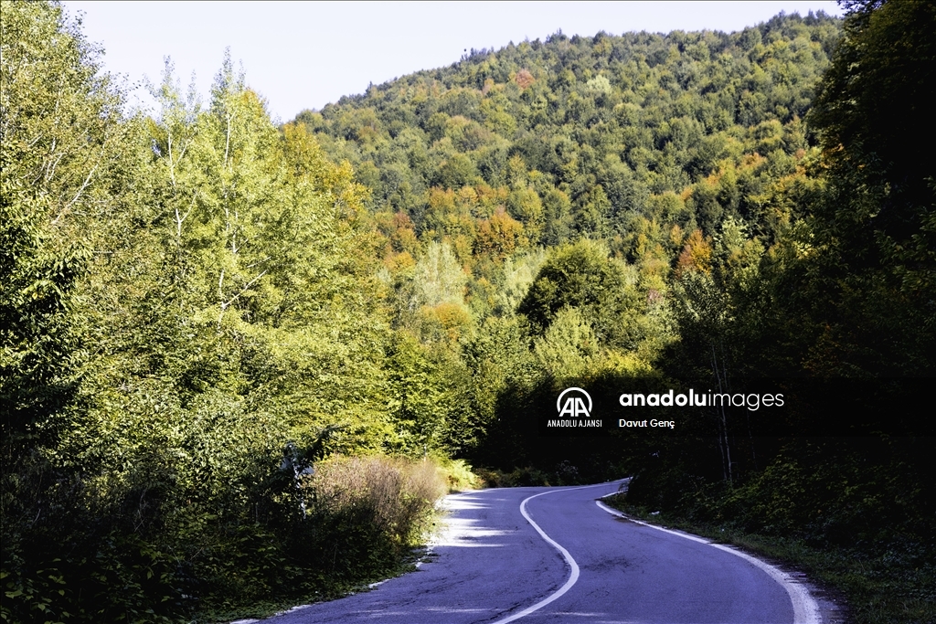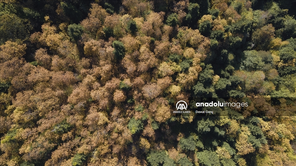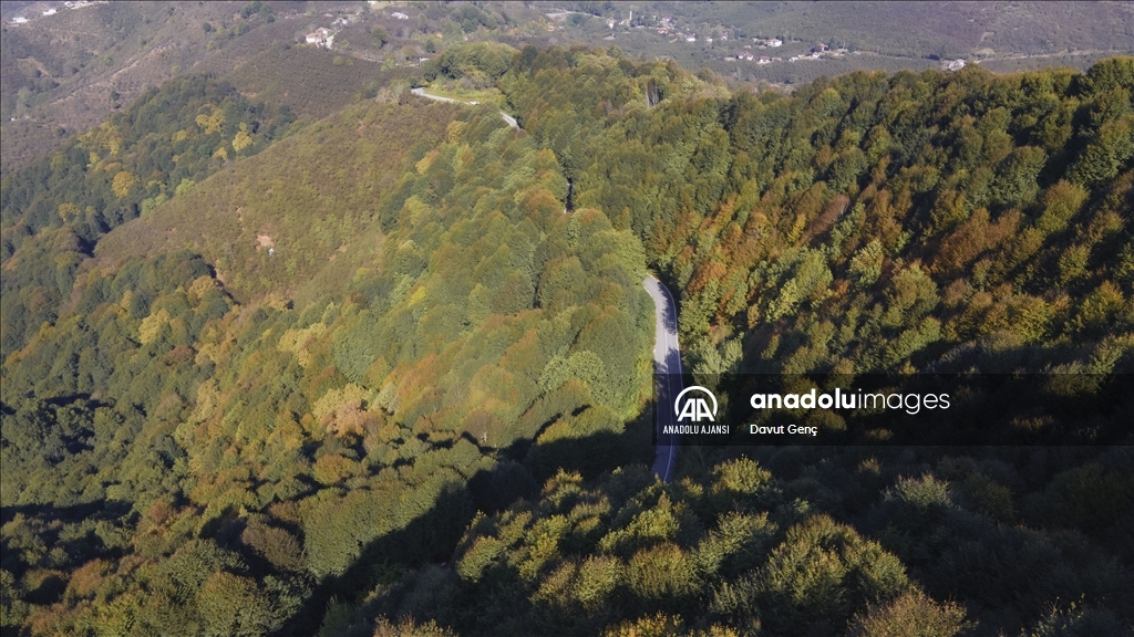 Sakarya'nın Kocaali ve Hendek ilçeleri arasında yer alan Çam Dağı'ndaki ağaçlar, sonbaharın gelmesiyle sarı, kahverengi ve kızılın tonlarına büründü. 900 rakımlı dağdaki kestane, çam ve gürgen ağaçlarının yaprakları, hazan mevsiminin renklerini yansıtmaya başladı.