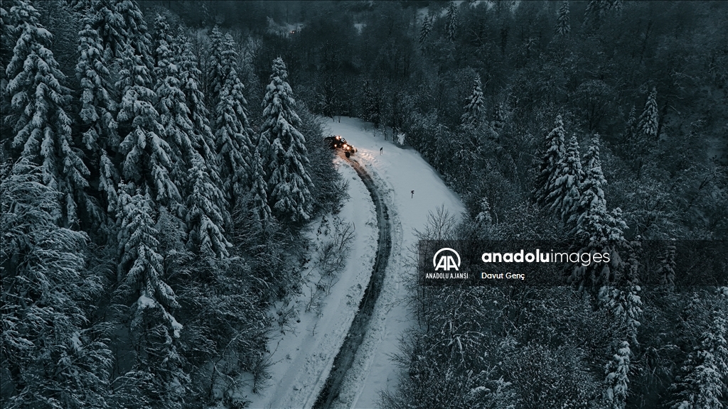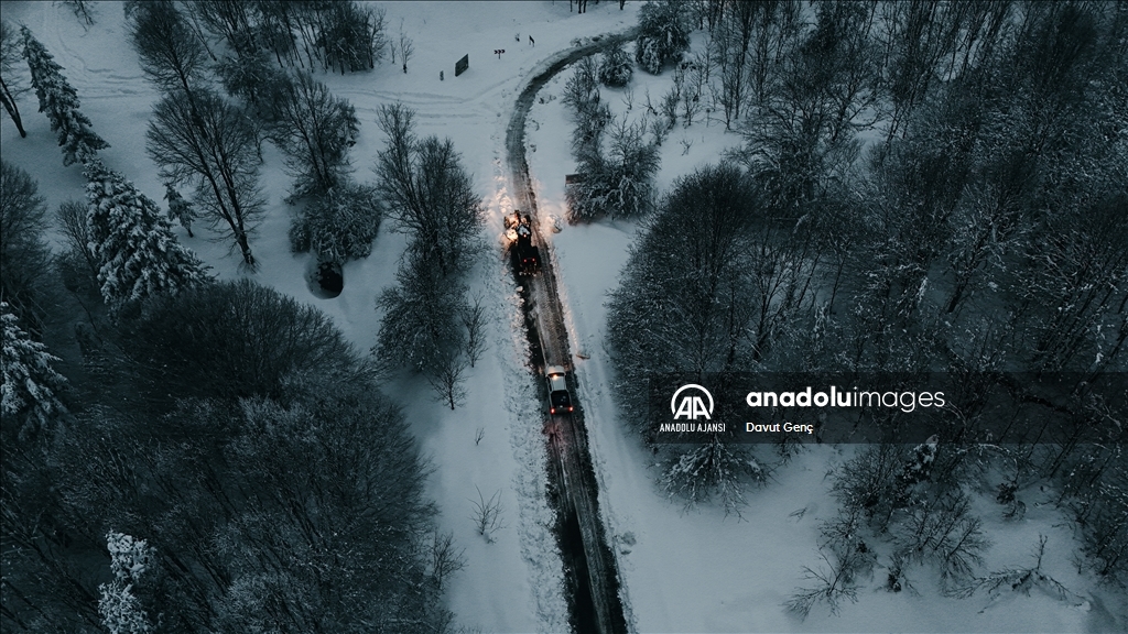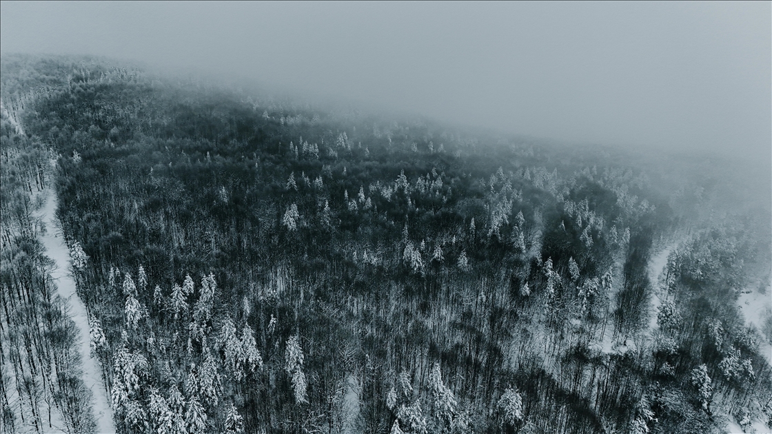 Çam Dağı'nda karla kaplanan ormanlar FPV dron ile görüntülendi