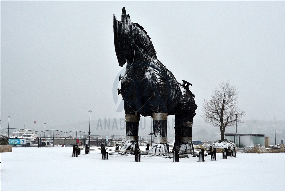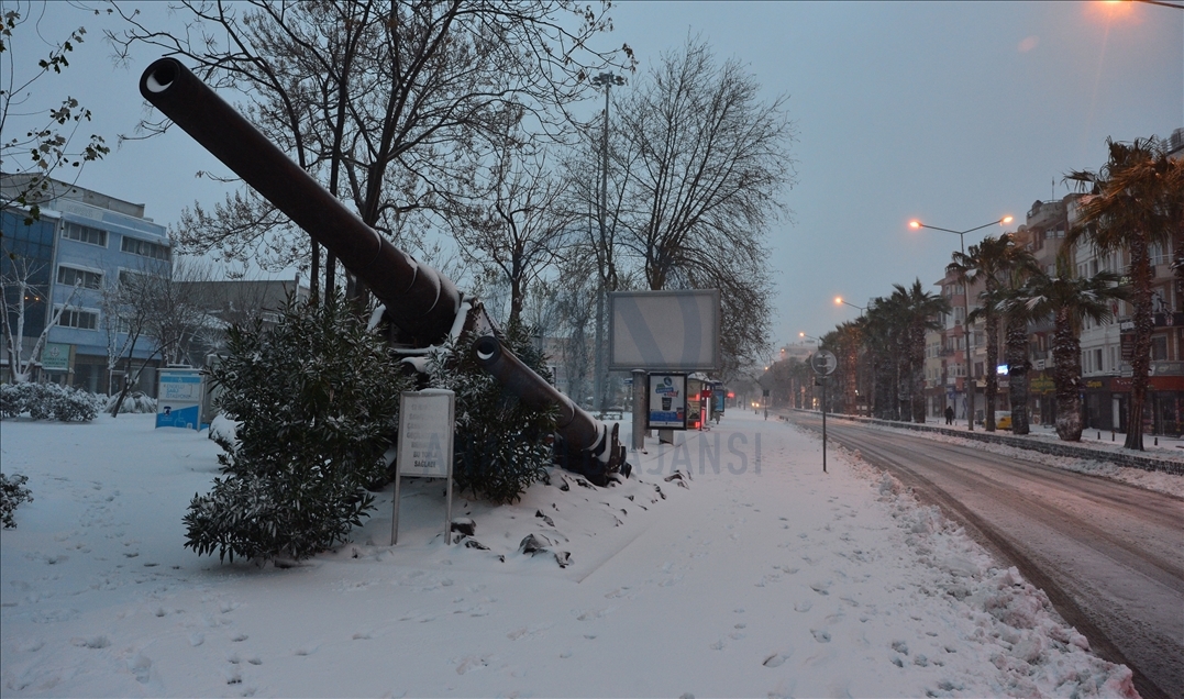 Çanakkale il merkezi ile Ayvacık, Biga, Lapseki, Çan, Yenice, Gökçeada ilçelerinde kar yağışı etkili oluyor. ( Burak Akay - Anadolu Ajansı )
