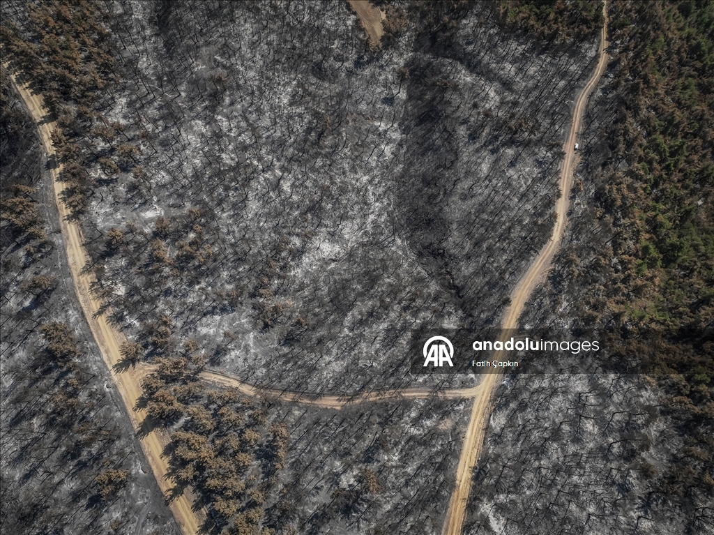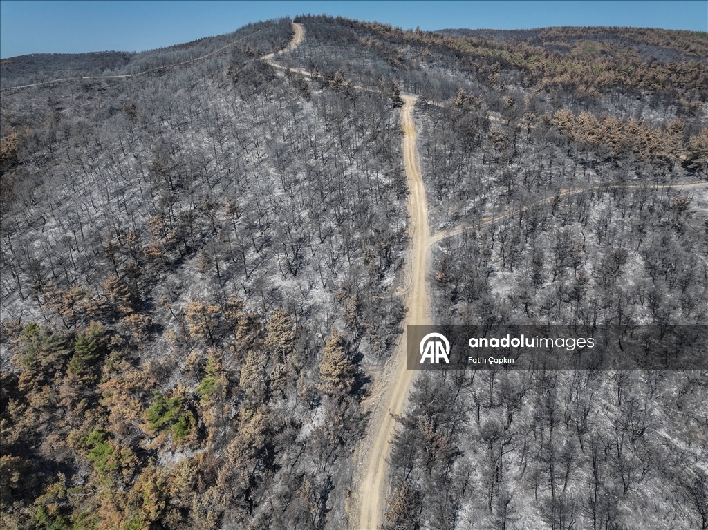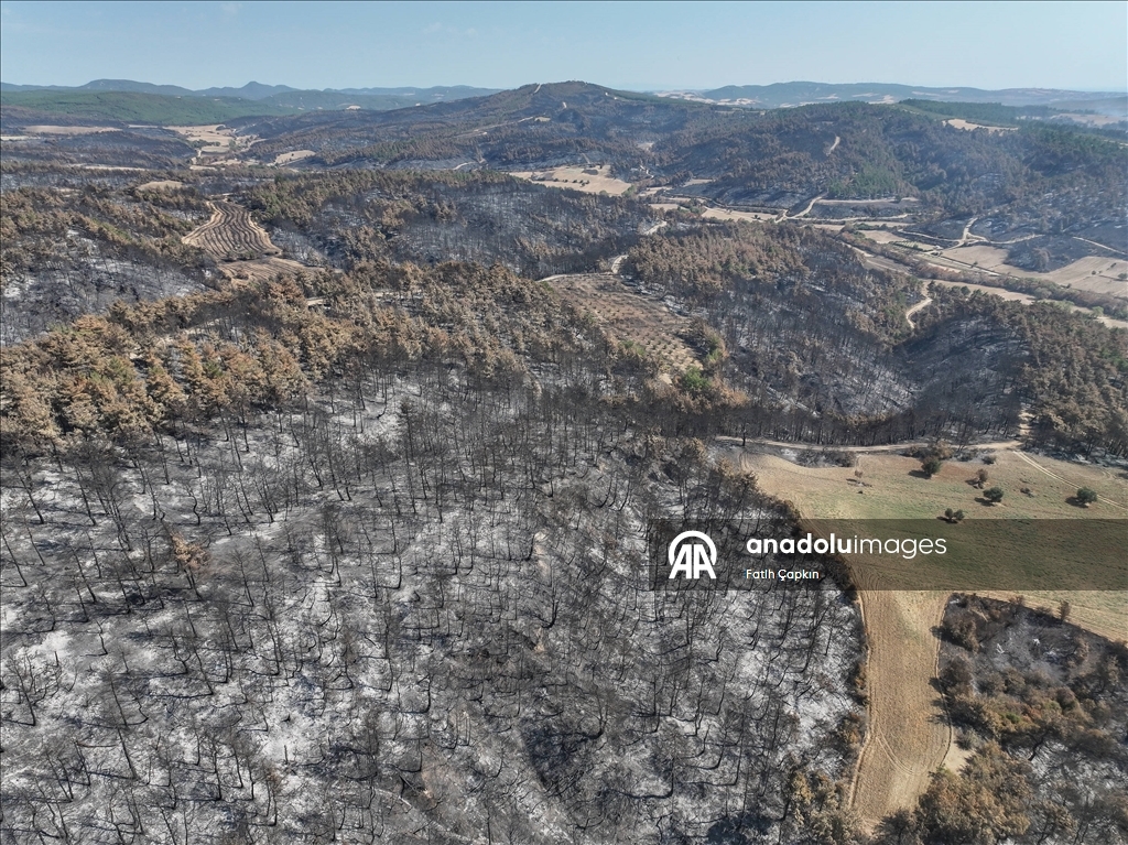 Çanakkale'de yangında zarar gören alanlar dronla görüntülendi