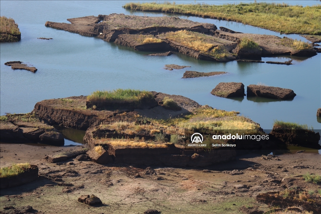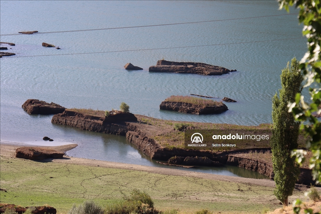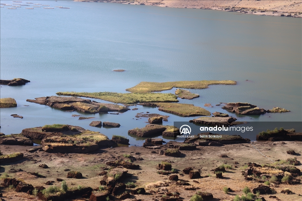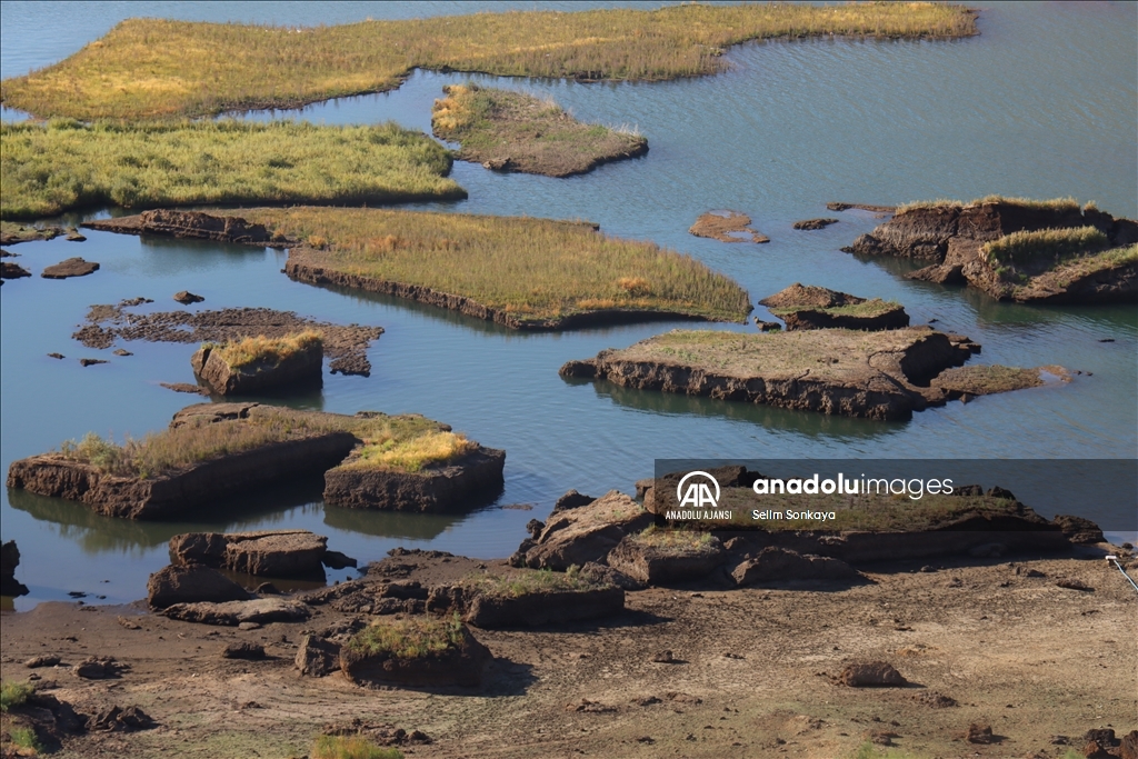 Adıyaman'ın Çelikhan ilçesindeki Çat Barajı'nda bulunan "yüzen adalar"ın büyük çoğunluğu, su seviyesinin azalması nedeniyle karaya oturdu.
