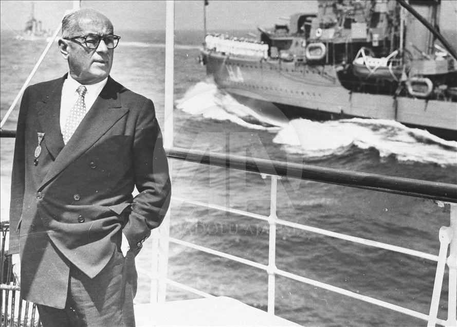 Türkiye'nin üçüncü Cumhurbaşkanı Celal Bayar, milli mücadele yıllarında önemli bir rol alarak "Galip Hoca" takma adıyla ülkenin işgalini engellemek için halkı bilinçlendirirken, çok partili siyasi yaşamın ilk sivil cumhurbaşkanı sıfatıyla da demokratikleşme ve özgürleşme alanında önemli çalışmalara imza attı. Türkiye'nin ilk sivil Cumhurbaşkanı Bayar'ın vefatının üzerinden 33 yıl geçti.1 Ocak 1950'de Cumhurbaşkanı Bayar, Deniz Kuvvetleri tatbikatında. (Arşiv)