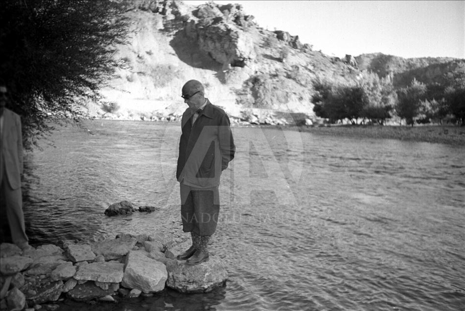 Türkiye'nin üçüncü Cumhurbaşkanı Celal Bayar, milli mücadele yıllarında önemli bir rol alarak "Galip Hoca" takma adıyla ülkenin işgalini engellemek için halkı bilinçlendirirken, çok partili siyasi yaşamın ilk sivil cumhurbaşkanı sıfatıyla da demokratikleşme ve özgürleşme alanında önemli çalışmalara imza attı. Türkiye'nin ilk sivil Cumhurbaşkanı Bayar'ın vefatının üzerinden 33 yıl geçti. 5 Ekim 1952'de Cumhurbaşkanı Bayar, Tunceli'yi ziyaretinde Murat Nehri kenarında. (Arşiv)