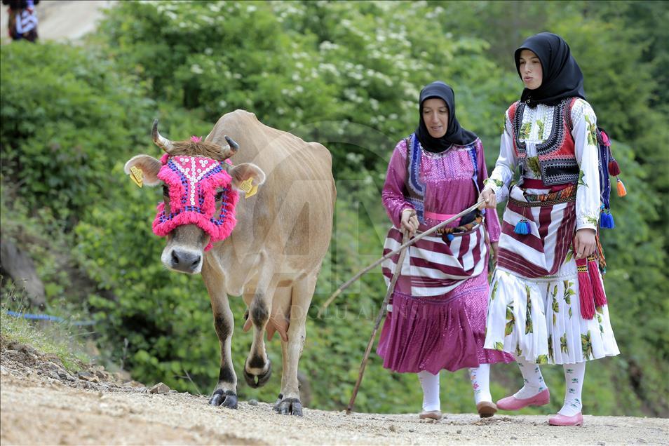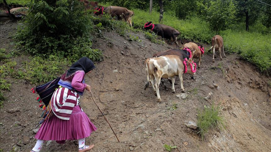 Oğuz Kağan Destanı'na göre Oğuzların 24 boyundan birisi olan Çepniler, Türklerin tarihteki konar göçer yaşam tarzlarının bir sonucu olan yaylalara göç etme geleneğini bu yıl da devam ettirdi. Kelime anlamı 'düşmanla savaşan' anlamına gelen tarihte Karadeniz'in Türkleşmesinde önemli bir rol oynayan Çepniler, Doğu Karadeniz'de havaların ısınmasıyla birlikte kültürlerinin bir göstergesi olan yaylalara göçe başladı. Nazarlık, gerdanlık, burunluk, kaşlık, boynuzluk, zil ve çanla süslenen hayvanlar, ahırdan çıkarılmadan önce son kez temizleniyor. Hayvanların temiz ve gösterişli olmasındaki amaç ise sahibinin ona verdiği önemi ve değeri gösteriyor. ( Hakan Burak Altunöz - Anadolu Ajansı )Hakan Burak Altunöz