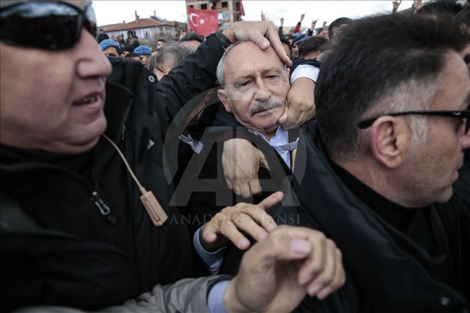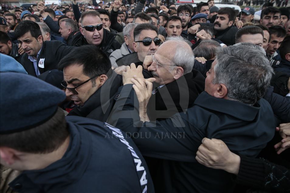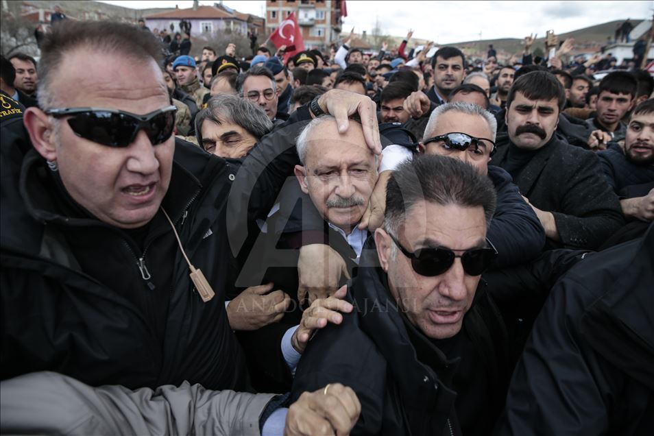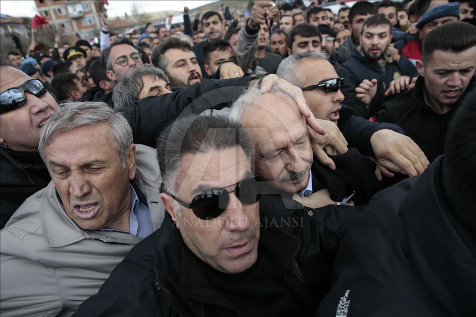 CHP Genel Başkanı Kemal Kılıçdaroğlu, Ankara'nın Çubuk ilçesinde şehit sözleşmeli piyade er Yener Kırıkcı'nın cenaze namazının ardından bir grup tarafından protesto edilerek saldırıya uğradı.