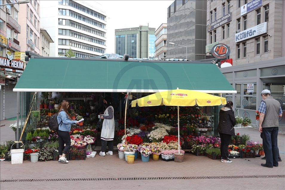 Yeni tip koronavirüs (Kovid-19) tedbirleri kapsamındaki tam kapanmada iş yerlerini kapatan çiçekçilerin yüzü Anneler Günü'nde güldü. İçişleri Bakanlığının Anneler Günü dolayısıyla dün ve bugün 10.00-17.00 saatleri arasında iş yerlerini açmasına izin verdiği çiçekçiler, yoğun mesai yapıyor. Kızılay Sakarya Caddesi'nde çiçekçilik yapan Hüseyin Karaman, AA muhabirine açıklamada bulundu. ( Fatih Kurt - Anadolu Ajansı )Fatih Kurt