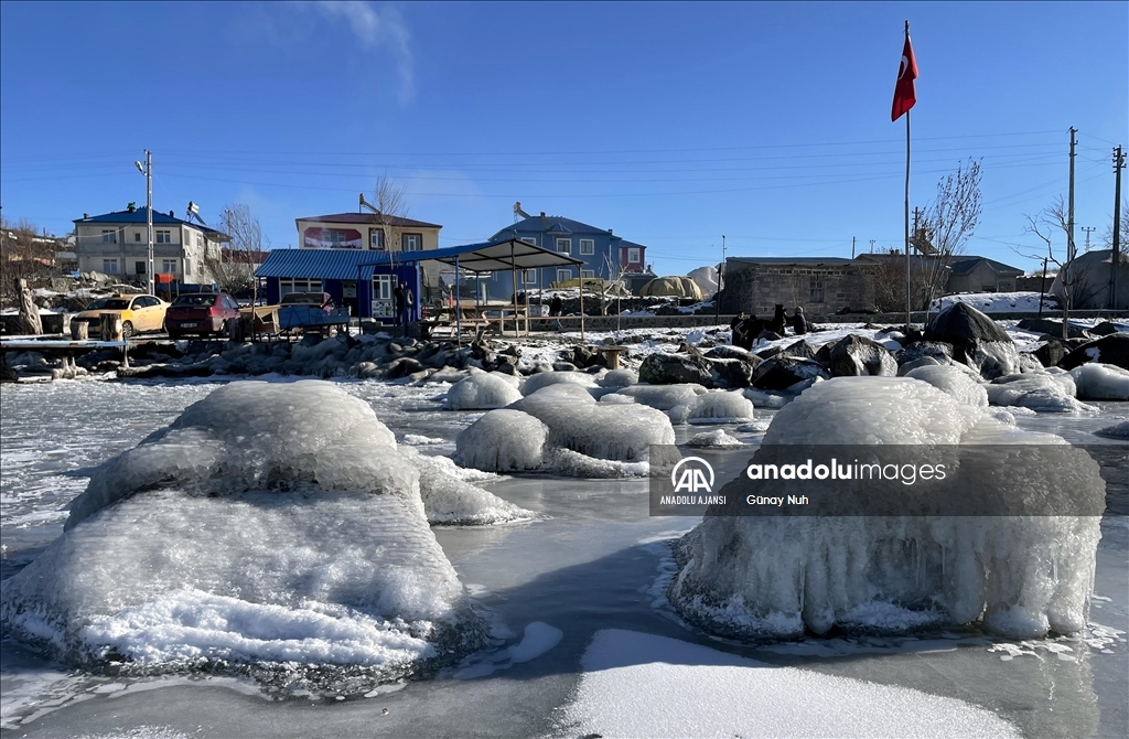 Ardahan ve Kars arasında bulunan Çıldır Gölü, son günlerde yaşanan soğuk havanın etkisiyle Kars bölgesinin ardından Ardahan kısmında da donmaya başladı.