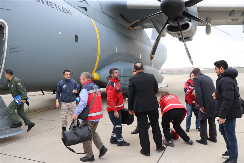 Yeni tip koronavirüs salgınının yaşandığı Çin'in Vuhan kentinde yaşayan Türk vatandaşlarını Türkiye'ye getirecek askeri kargo uçağı Kayseri'den Etimesgut Askeri Havaalanı'na geldi. AA