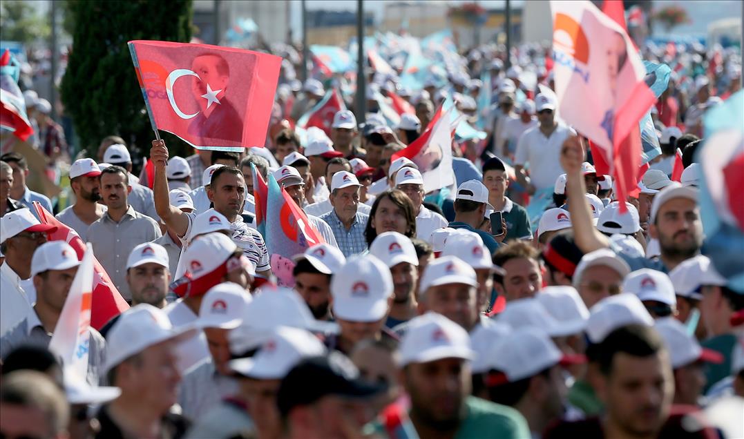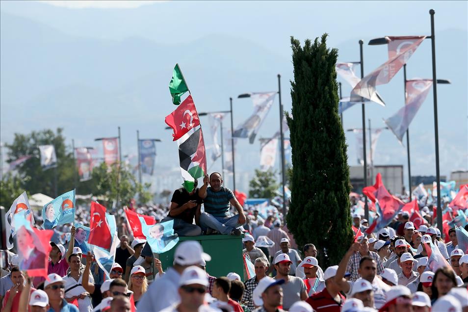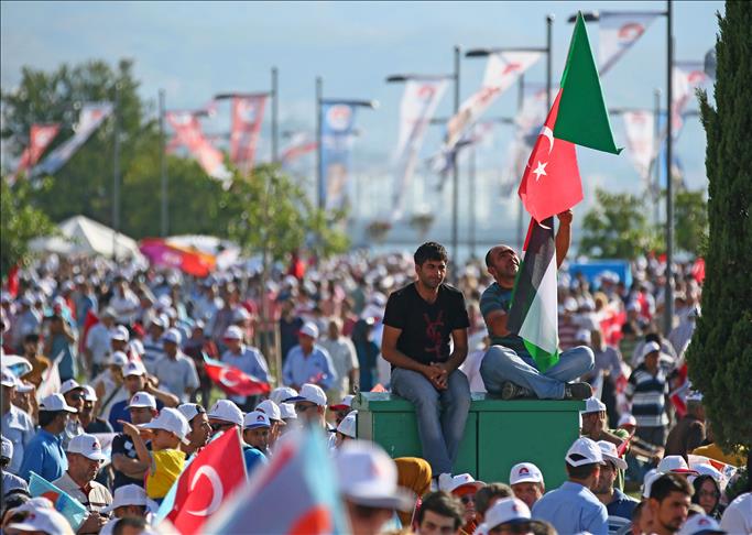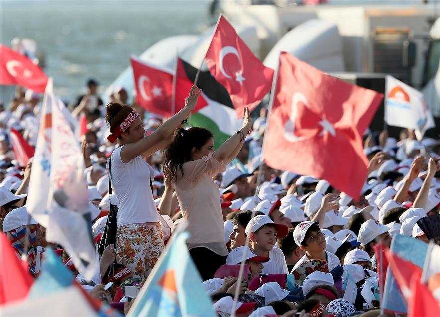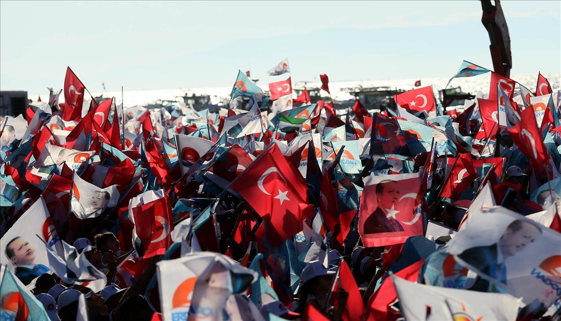 Cumhurbaşkanı adayı ve Başbakan Recep Tayyip Erdoğan'ın halka hitap edeceği Gündoğdu Meydanı’ndaki mitinge çok sayıda vatandaş katıldı. (Cem Öksüz - Anadolu Ajansı)Cem Öksüz