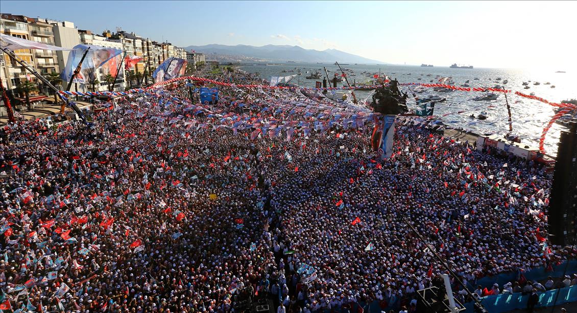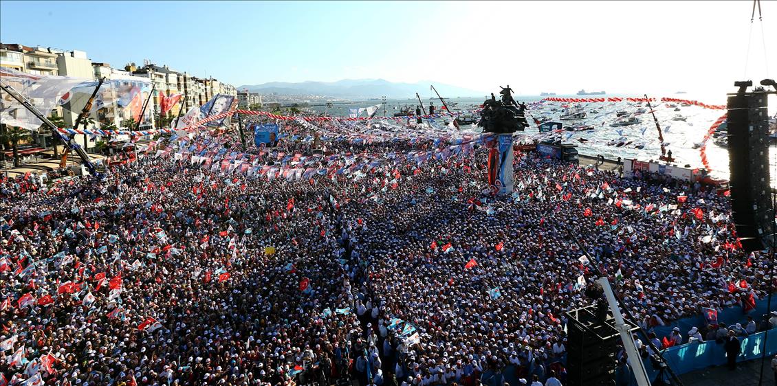 Cumhurbaşkanı adayı ve Başbakan Recep Tayyip Erdoğan, İzmir Gündoğdu Meydanı’nda halka hitap etti. (Kayhan Özer - Anadolu Ajansı)Kayhan Özer