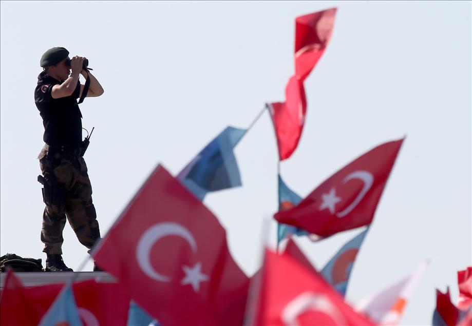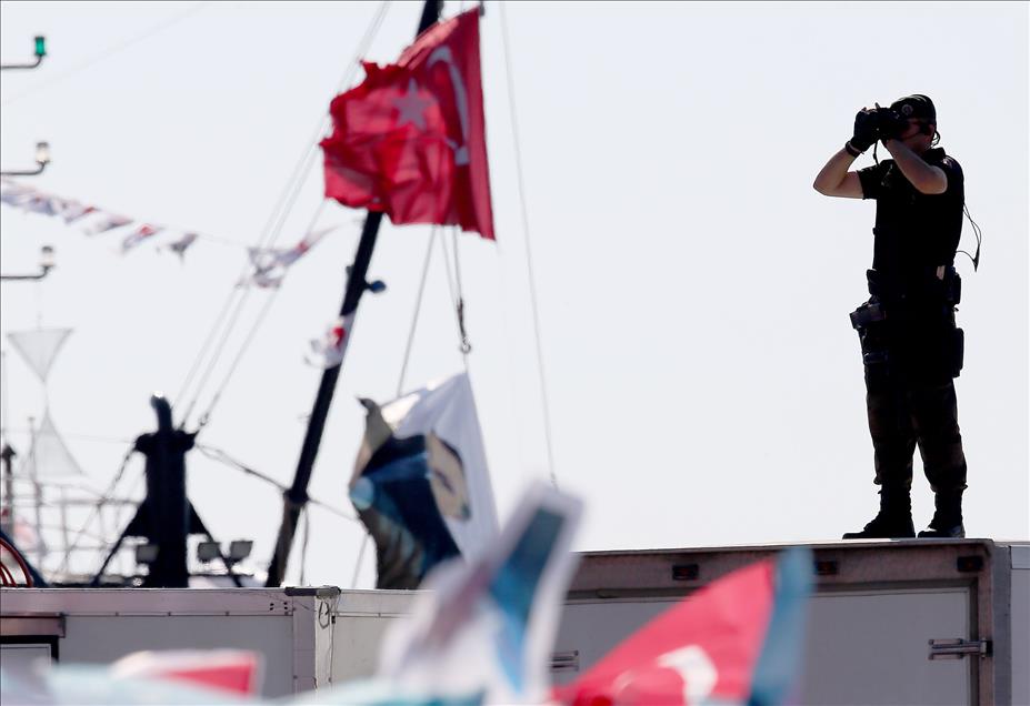 Cumhurbaşkanı adayı ve Başbakan Recep Tayyip Erdoğan'ın halka hitap edeceği Gündoğdu Meydanı’ndaki mitinge çok sayıda vatandaş katıldı. Polis çevrede geniş güvenlik önlemi aldı. (Cem Öksüz - Anadolu Ajansı)Cem Öksüz