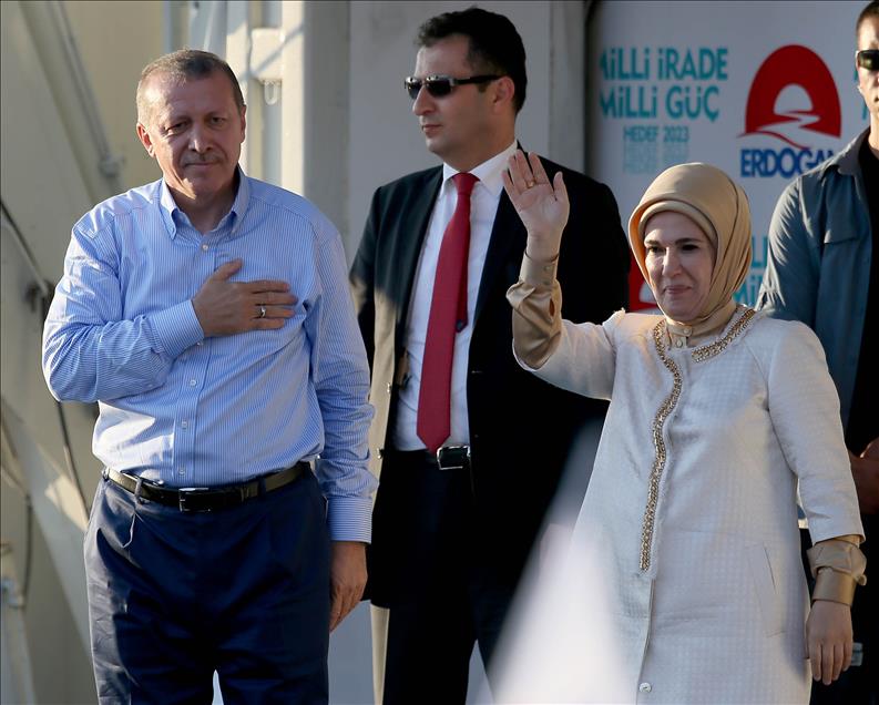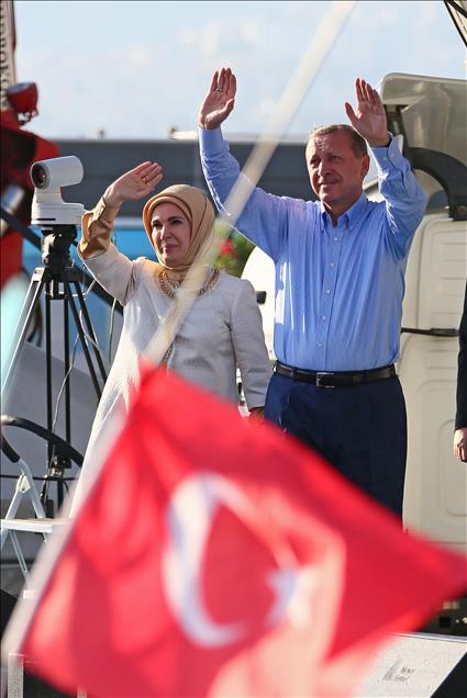 Cumhurbaşkanı adayı ve Başbakan Recep Tayyip Erdoğan, İzmir Gündoğdu Meydanı’nda halka hitap etti. Başbakan Erdoğan, eşi Emine Erdoğan ile birlikte vatandaşları selamladı. (Cem Öksüz - Anadolu Ajansı)Cem Öksüz