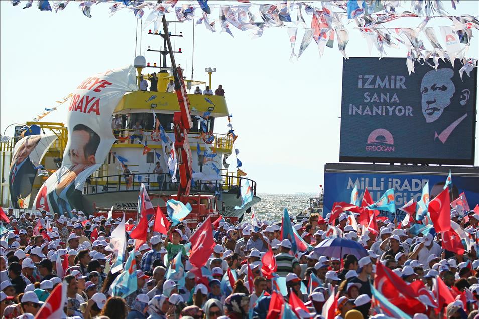 Cumhurbaşkanı adayı ve Başbakan Recep Tayyip Erdoğan, İzmir Gündoğdu Meydanı’nda halka hitap etti. (Binnur Ege Gürün - Anadolu Ajansı)Binnur Ege Gürün