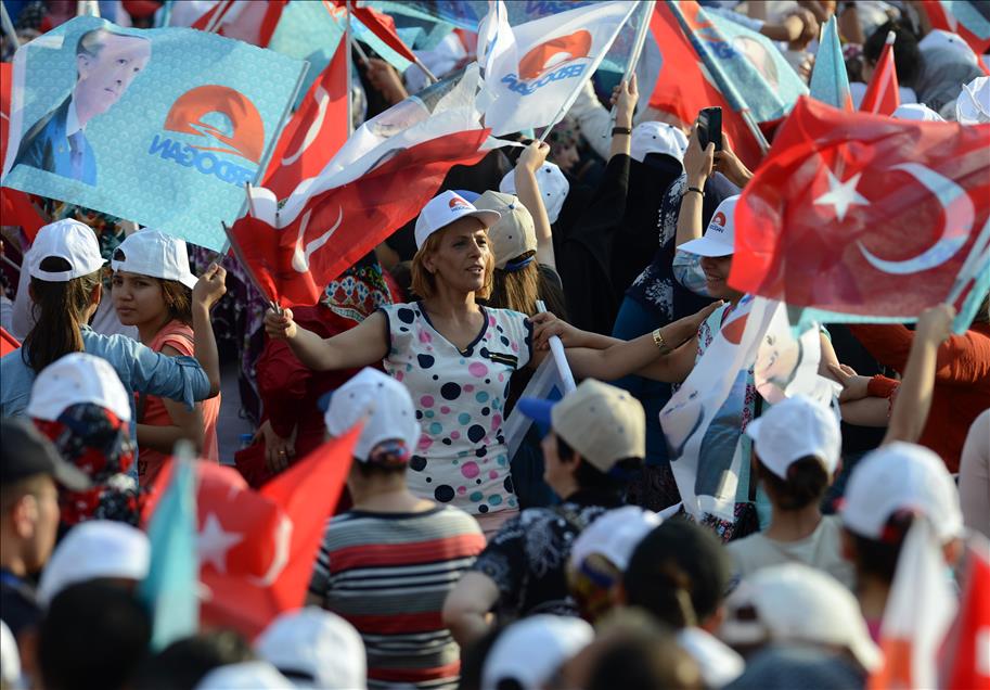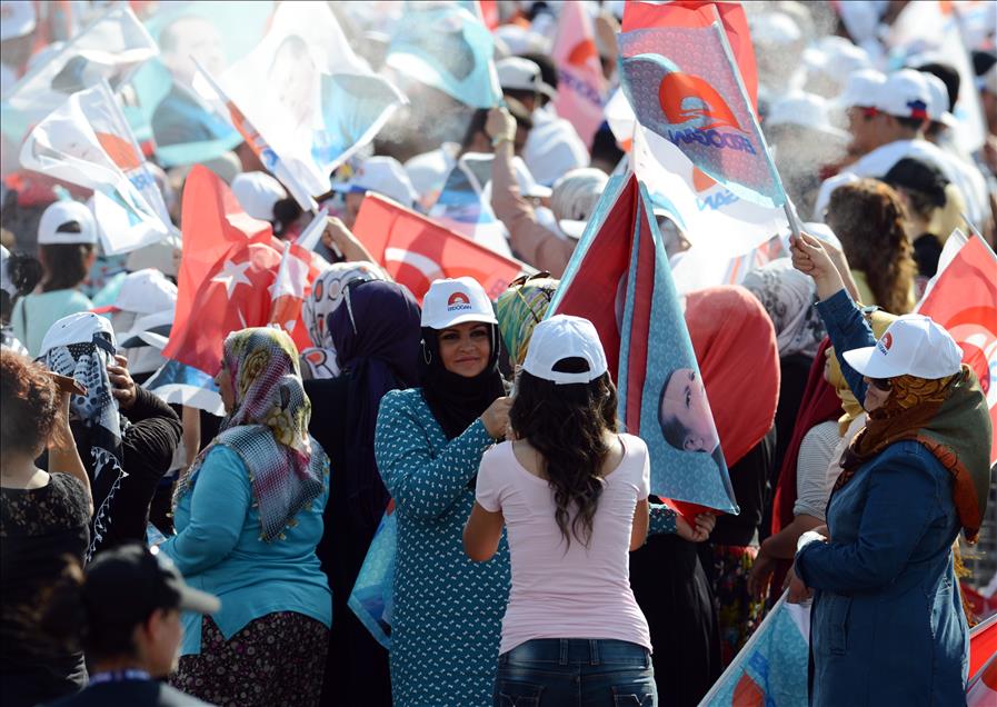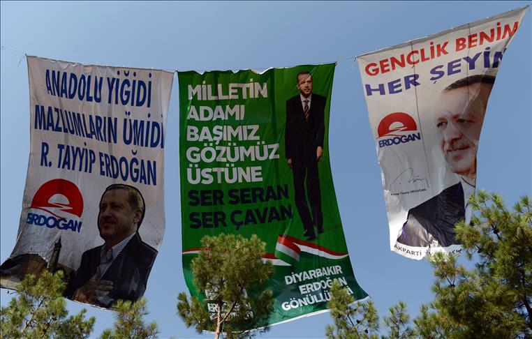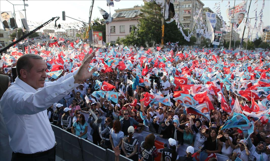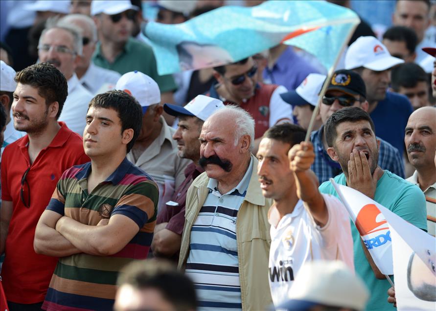 Cumhurbaşkanı adayı ve Başbakan Recep Tayyip Erdoğan'ın, Diyarbakır İstasyon Meydanı'nda düzenlediği mitinge çok sayıda vatandaş katıldı. (Hüseyin Bağış - Anadolu Ajansı)Hüseyin Bağış