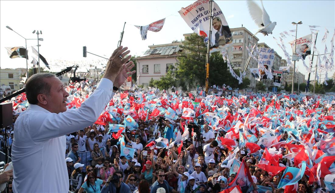 Cumhurbaşkanı adayı ve Başbakan Recep Tayyip Erdoğan, Diyarbakır İstasyon Meydanı'nda düzenlenen mitingte halka hitap etti. (Kayhan Özer - Anadolu Ajansı)Kayhan Özer