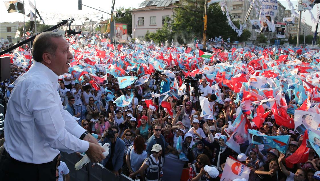 Cumhurbaşkanı adayı ve Başbakan Recep Tayyip Erdoğan, Diyarbakır İstasyon Meydanı'nda düzenlenen mitingte halka hitap etti. Diyarbakırlı vatandaşlar mitinge ilgi gösterdi. (Kayhan Özer - Anadolu Ajansı)Kayhan Özer